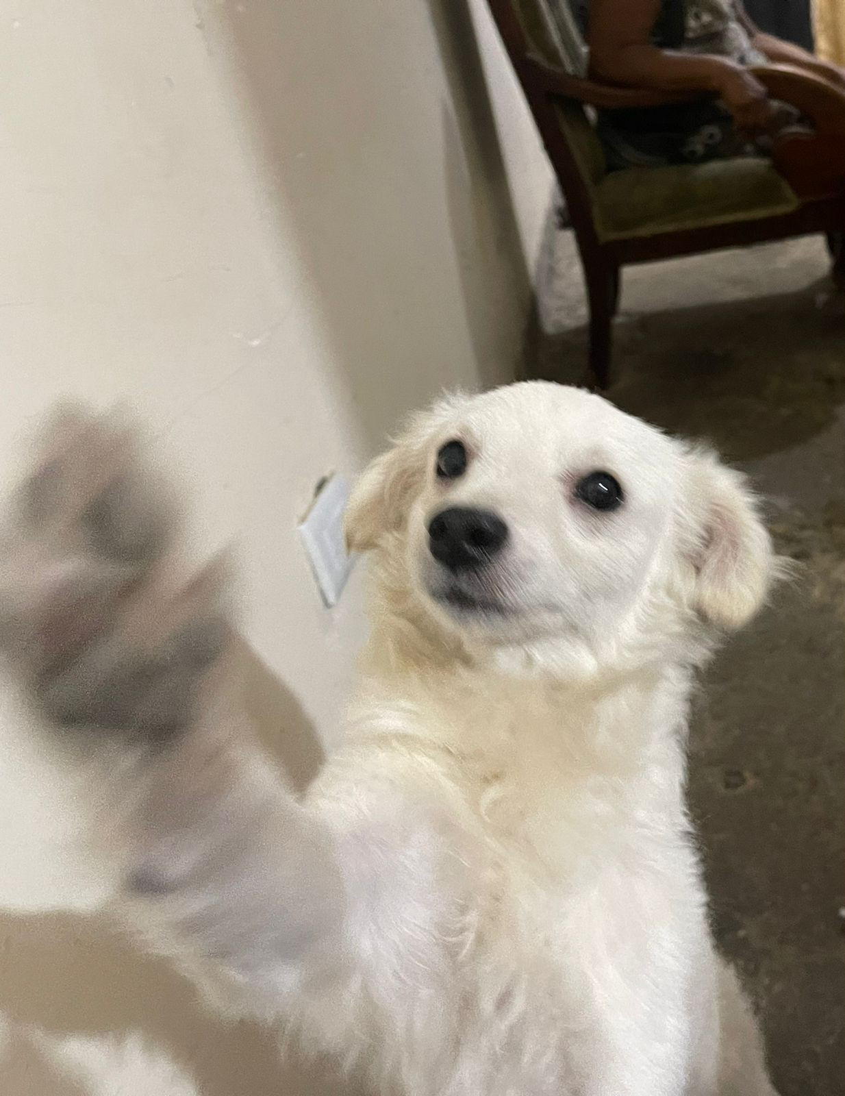 ✅ Regalo es un perrito blanco, su pelo es liso alborotoso, es pequeño, su colita es mochita, da la mano para saludar y si uno le abre los brazos se hecha para que lo carguen.