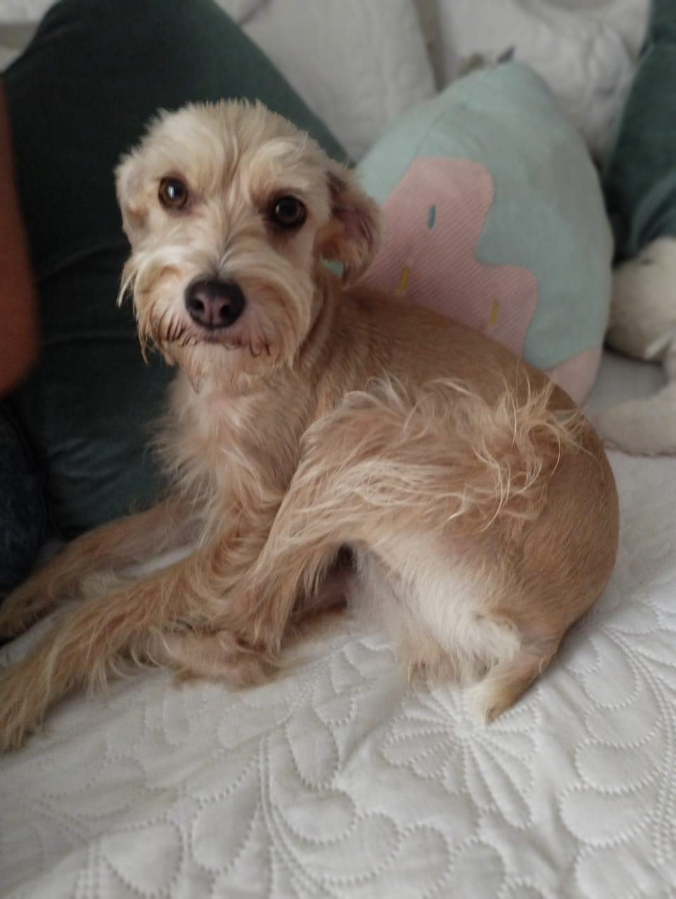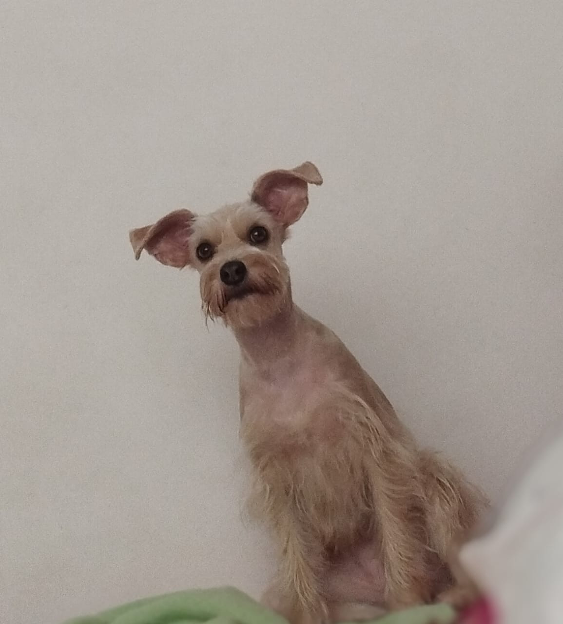 ✅ Es una perrita criolla con snauzer es mona pati flaca, tiene el corte de snauzer y su cola es cortica.