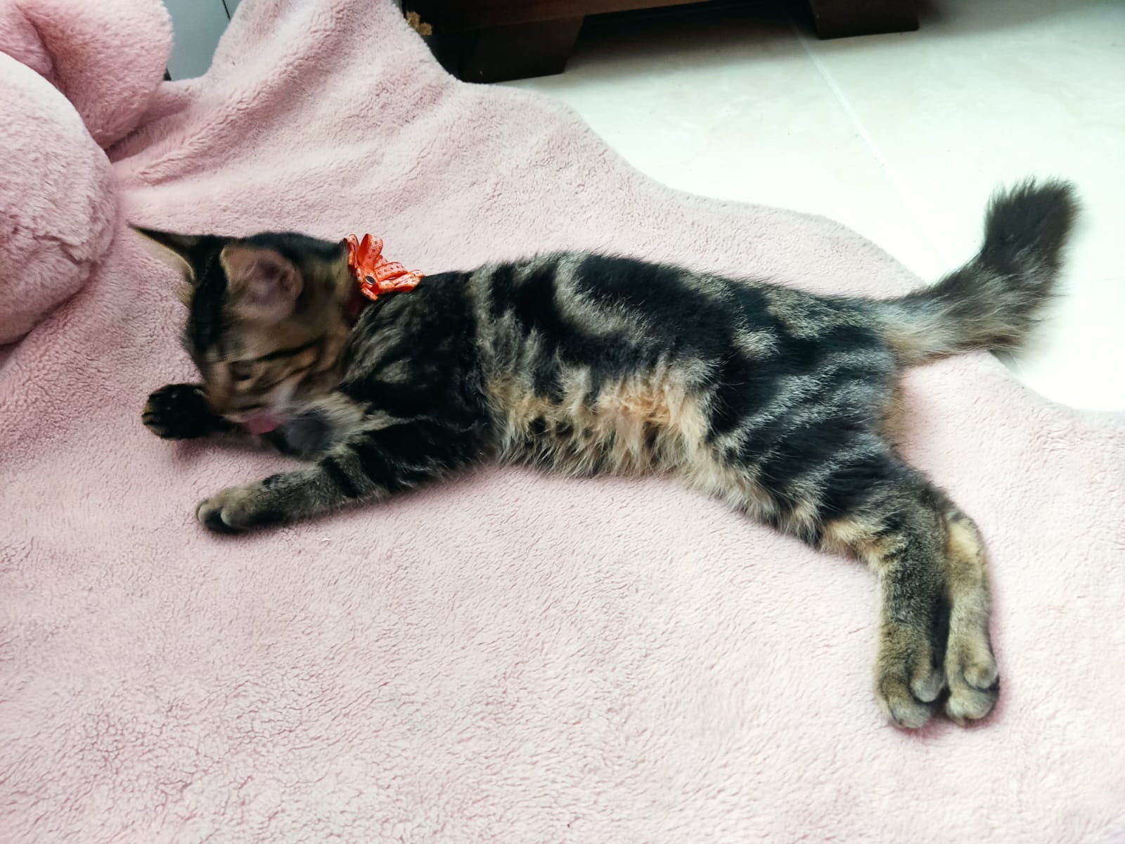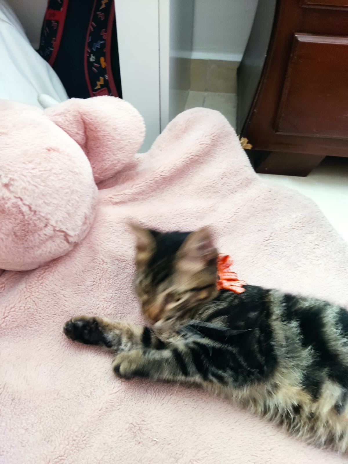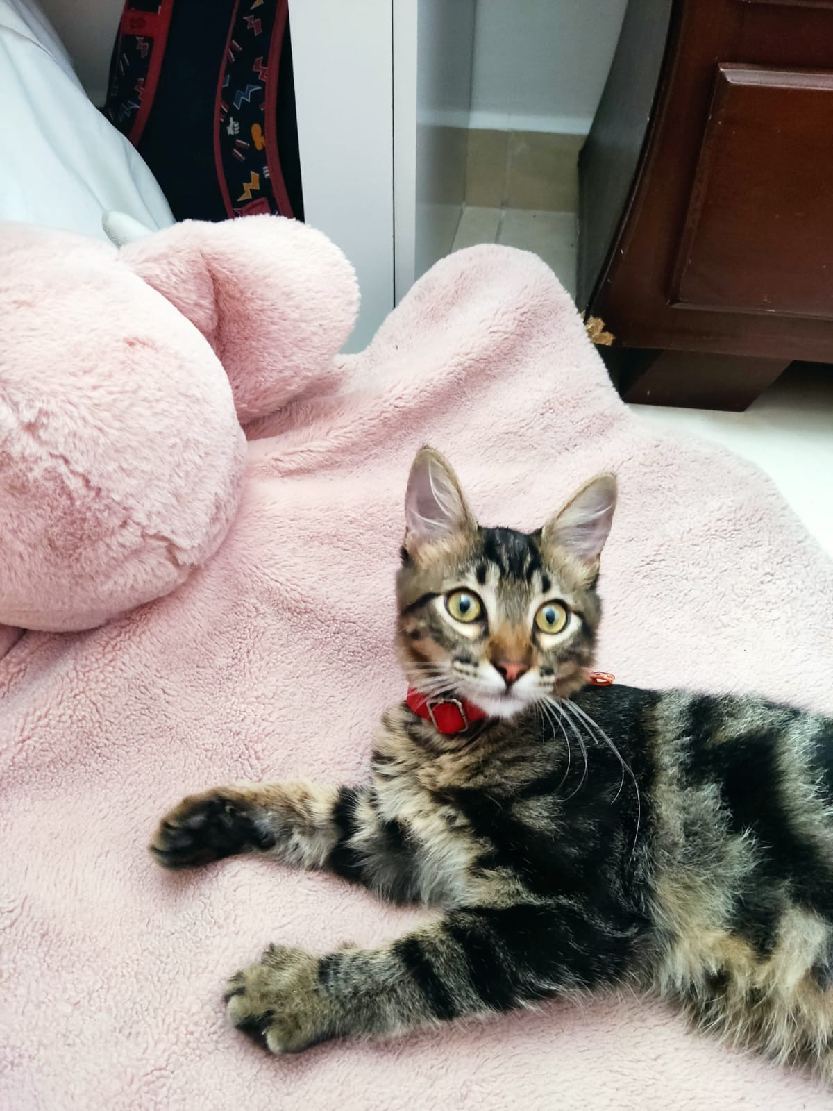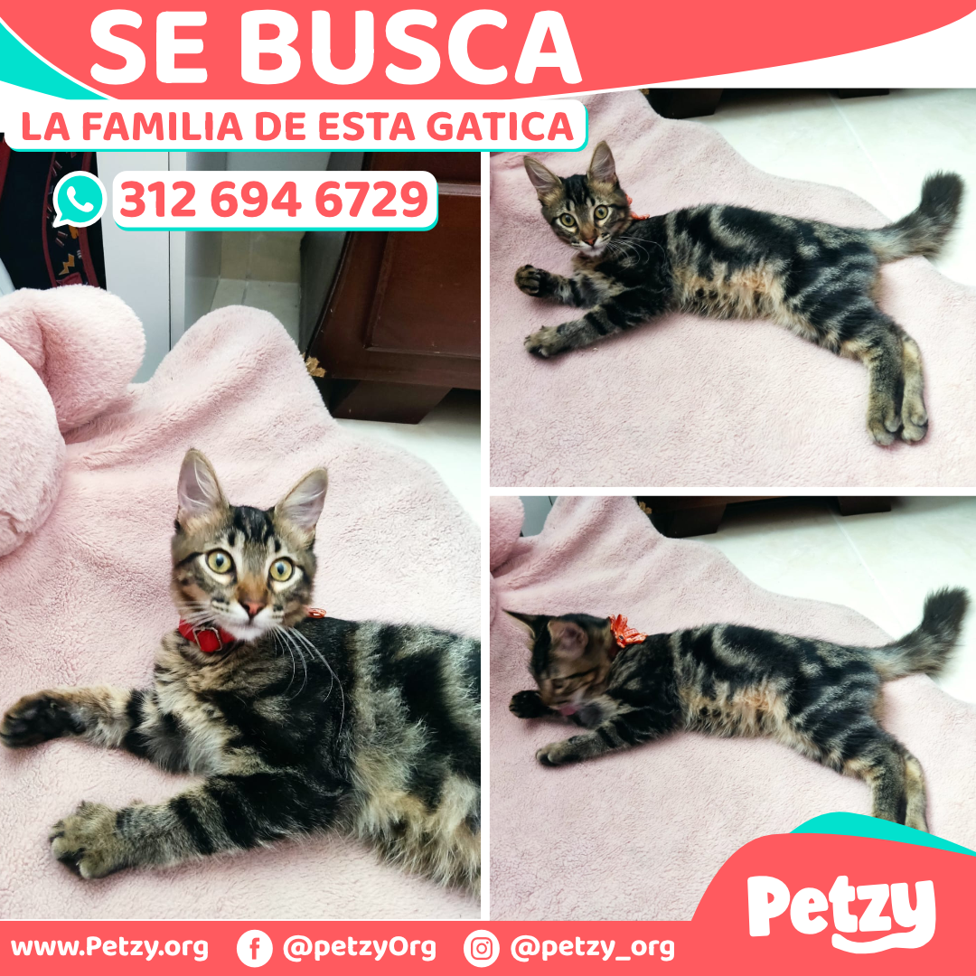 ✅ Es una gatica que tiene entre 3 y 4 meses aproximadamente, cuando se encontró tenía un collar rojo con una flor..