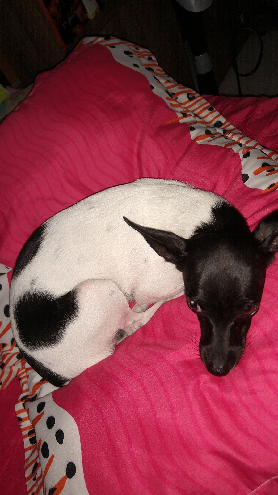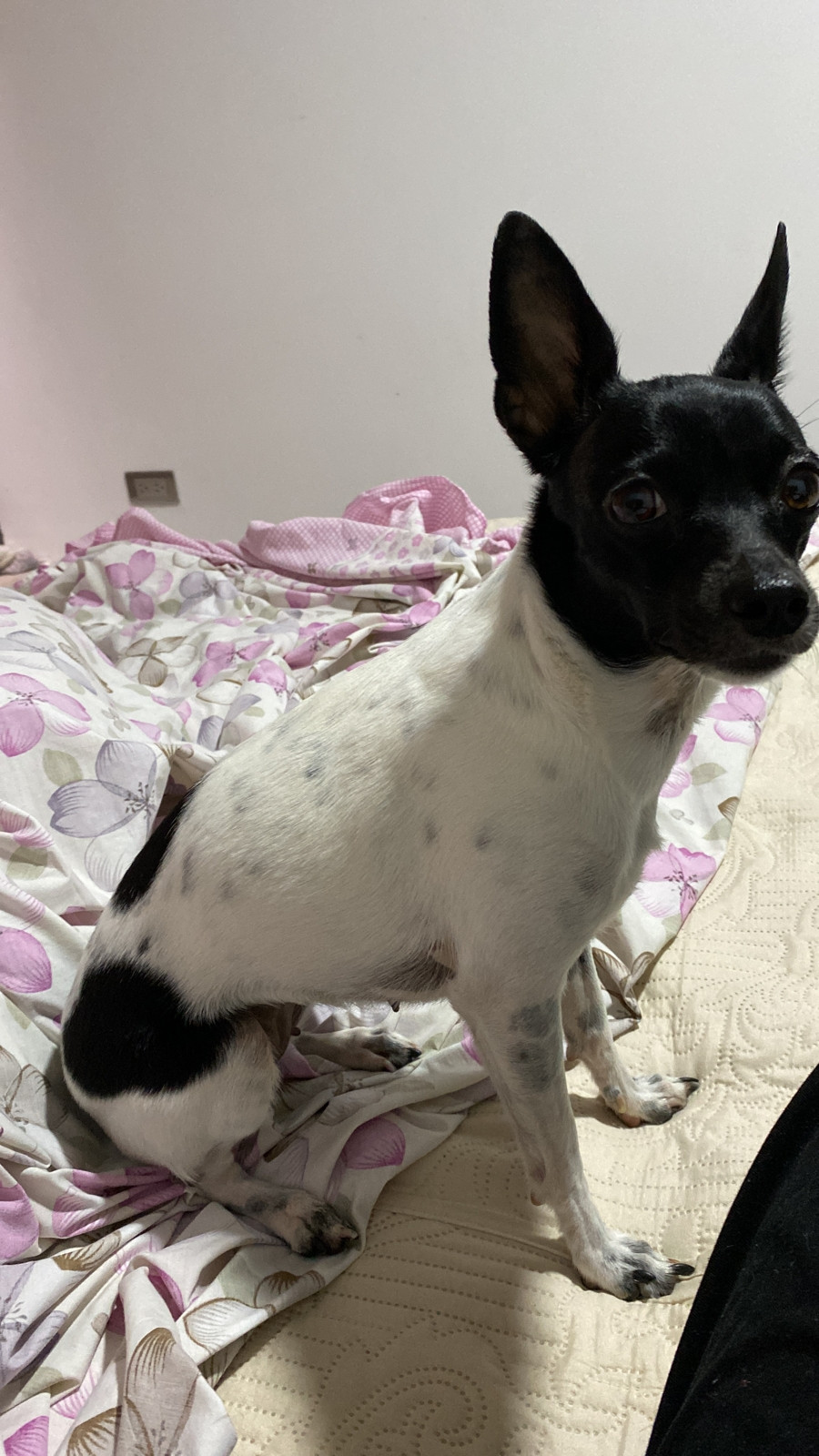 Alaska se habia perdido en Cali, Ciudad 2000 el dia lunes 19 de diciembre de 2022. Alaska es Perro pincher, con la cabeza negra cuerpo blanco y manchas en la espalda, y tiene la cola muy corta, parece vaquita. Es muy arisca si la encentras llama inmediatamente no se deja tocar de cualquiera. En el momento que se extravió NO tenía puesto ningún accesorio.