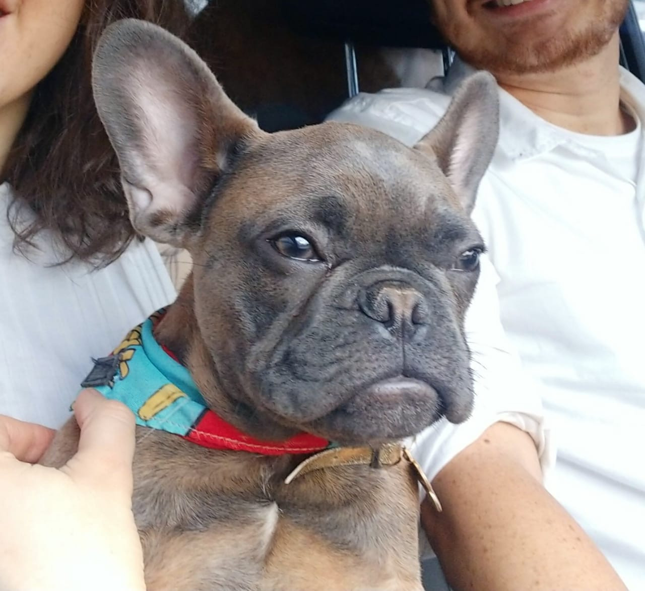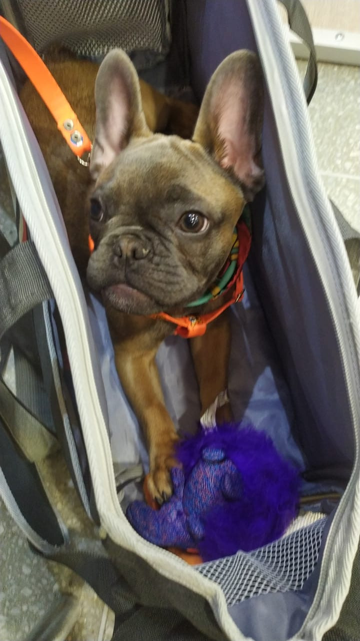 ✅ En el momento que se extravió tenía puesto un collar dorado delgado y una pañoleta azul con unas papitas francesas estampadas.
