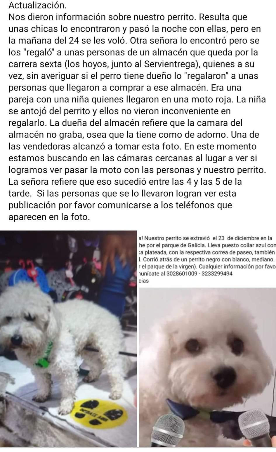 Se habia perdido en Popayán, barrio los hoyos el dia viernes 23 de diciembre de 2022. Beckham es totalmente blanco, tiene la nariz negrita y su cola es larga. En el momento que se extravió tenía puesto un collar