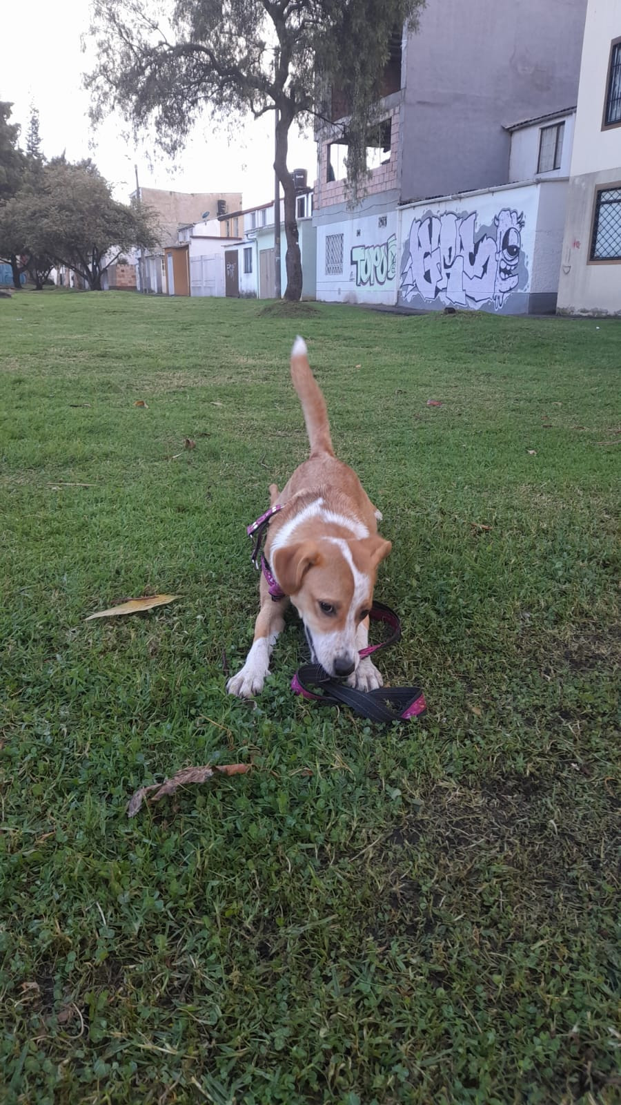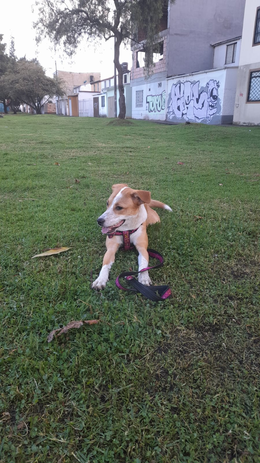 Suky se habia perdido en Bogota, barrio Villa Gladys, Engativa por los lados de la Fazenda el dia domingo 1 de enero de 2023. Suky es Es una perrita, hembra, es criollita, su pelito es amarillo con algunas manchas blancas y es de tamaño mediana; esta recientemente esterilizada, aún le está naciendo pelito en la herida.El día que se perdió tenia un arnés rosado con huesitos dibujados