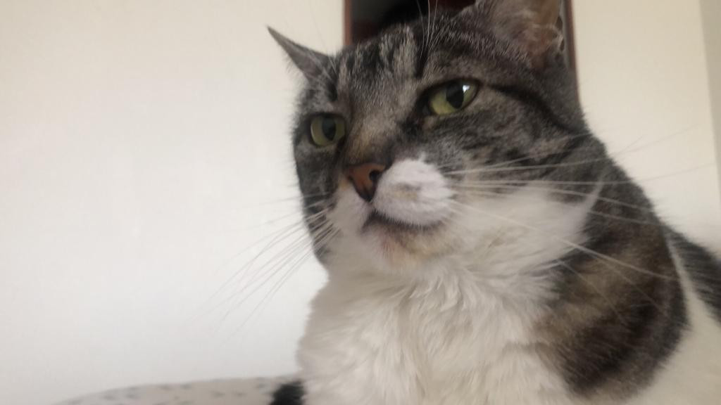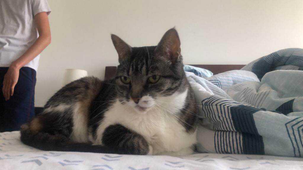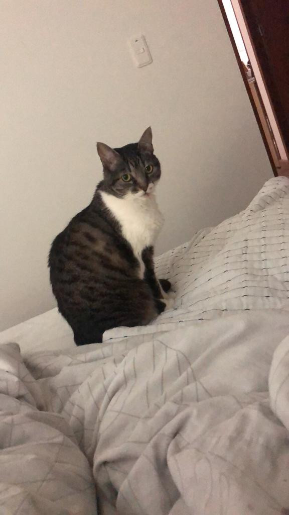 Estrellita se habia perdido en Bogota, Victoria Norte. Entre la Cra 53a con Calle 150a. el dia lunes 9 de enero de 2023. Estrellita es Es una gatica, hembra, criollita, de pecho blanco y lomo gris con pintas blancas. Por su edad se le han caído algunos dientes. No es agresiva mas bien es bastante sumisa; Está esterilizada, vacunada y purgada. En el momento que se extravió NO tenía puesto ningún accesorio.