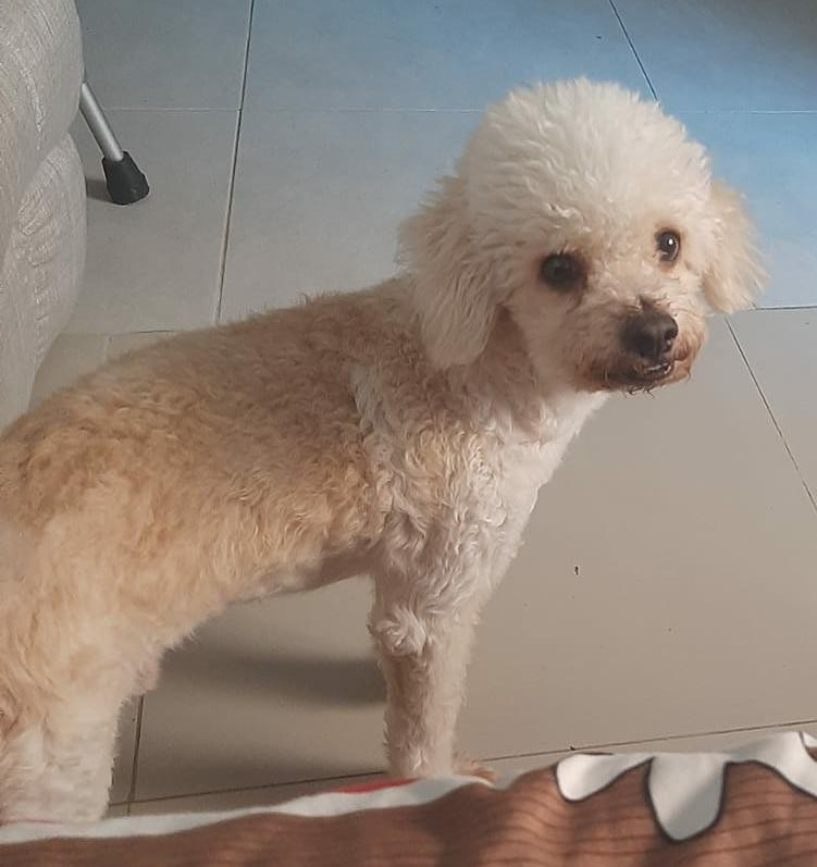 Doki se habia perdido en Barranquilla, Barrio Olaya el dia domingo 8 de enero de 2023. Doki es Es un perrito, macho, es de raza French Poodle, de tamañp grande y de color blanco. En el momento que se extravió NO tenía puesto ningún accesorio.