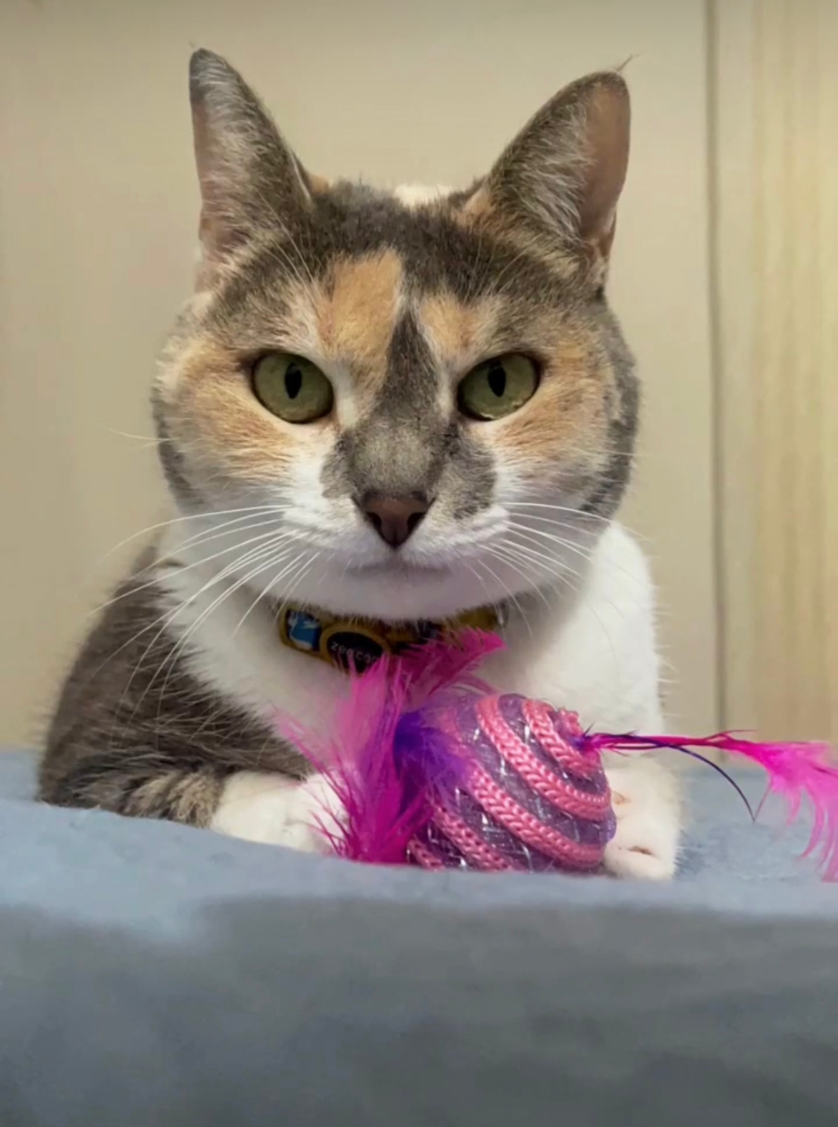 Dulccini se habia perdido en Popayán, Conjunto arrayanes de la hacienda etapa el dia jueves 12 de enero de 2023. Dulccini es Es una gatica, hembra, criollita, su pelaje es de tres colores, blanco amarillo y gris.Cuando se perdió tenía un collar de galletitas azul