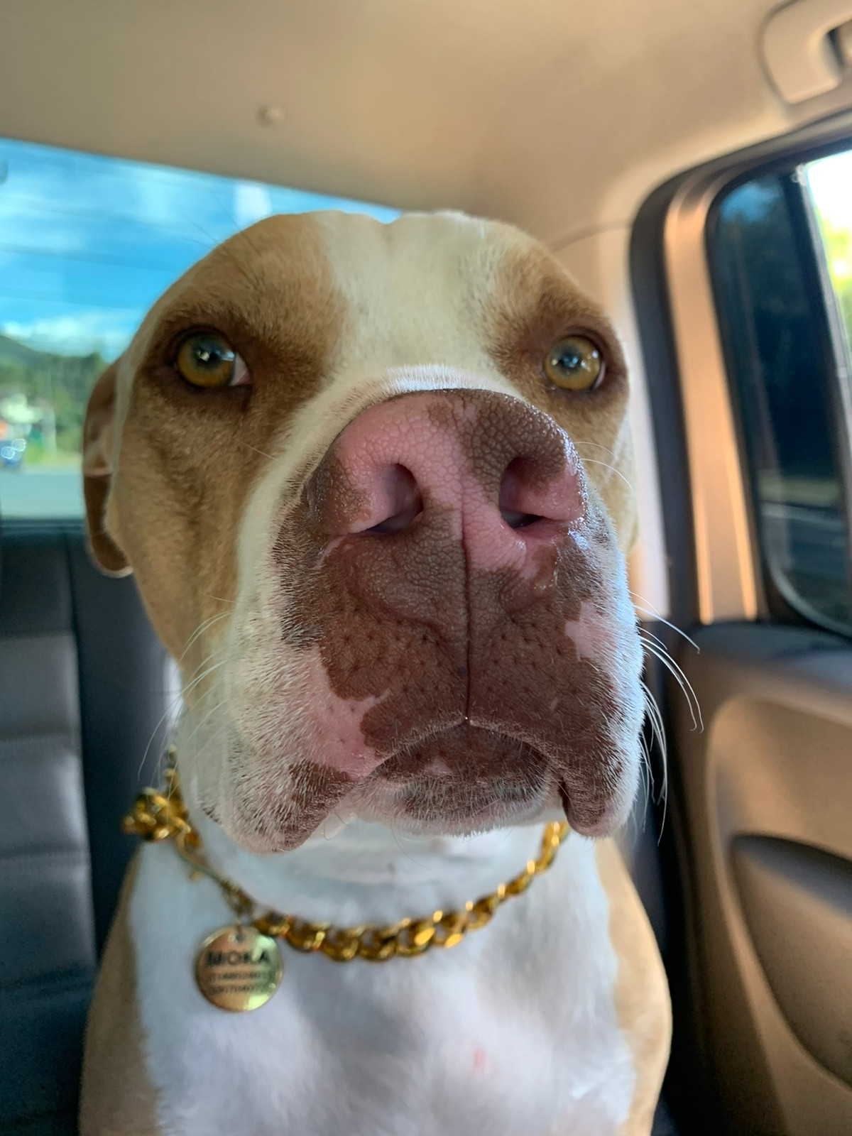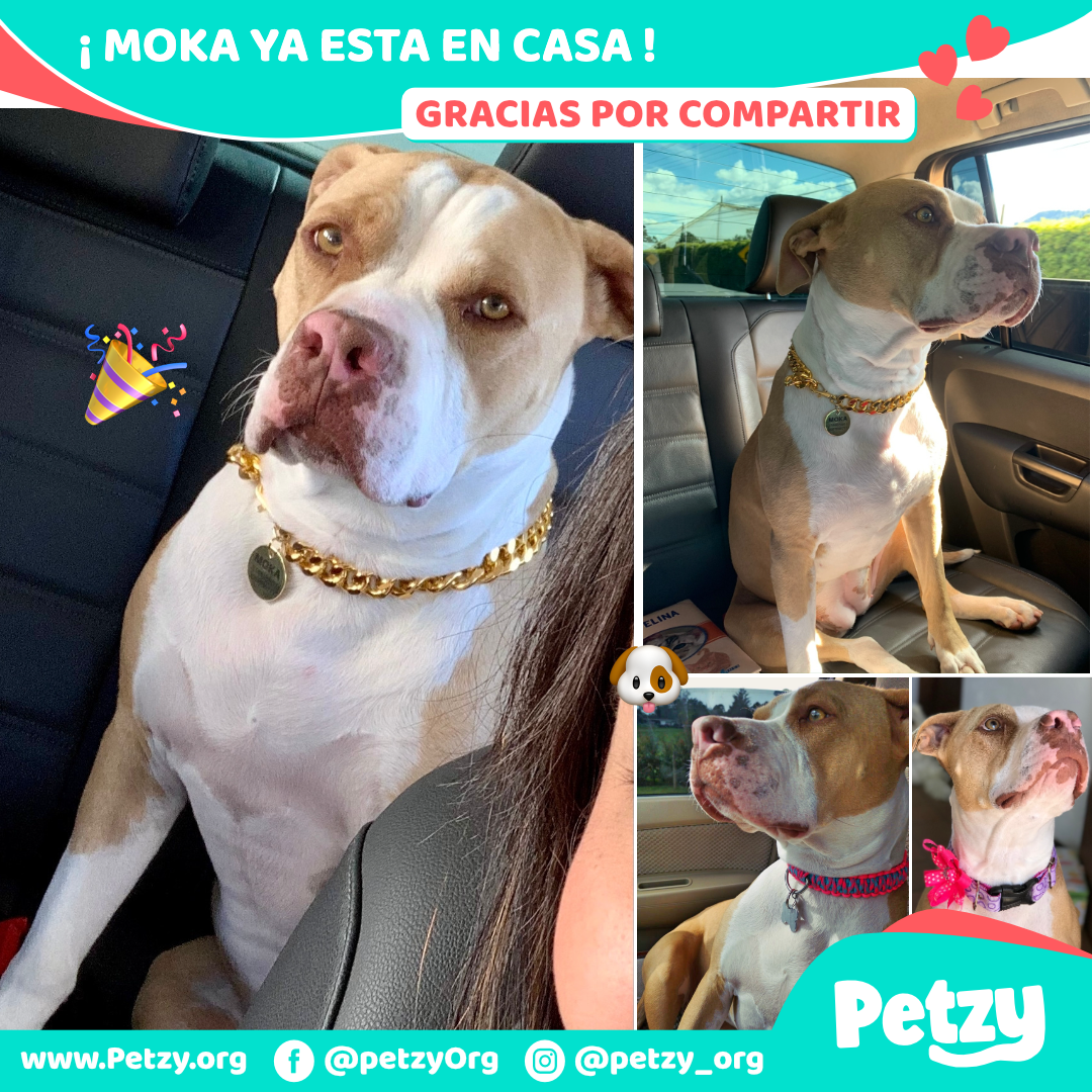 Moka se habia perdido en La Ceja, Antioquia, vereda el guamito el dia miércoles 18 de enero de 2023. Moka es Es una perrita, hembra, de raza Pitbull, que es de color café con blanco, tiene una cicatriz de esterilización en el vientre y un dedito fracturado de la pata delantera izquierda.Se encuentra sin collar ya que alguien intentó cogerla y ésta persona se quedó con el collar