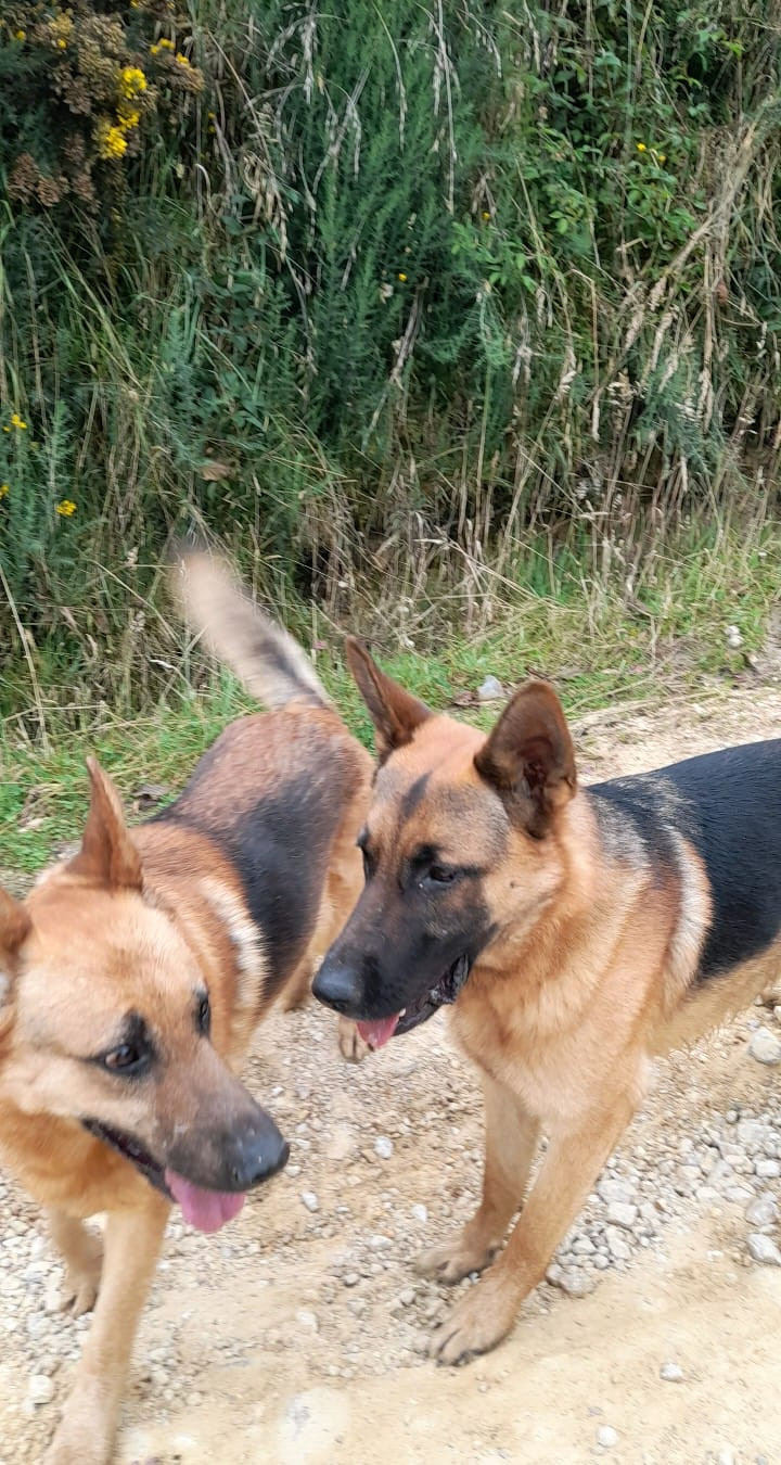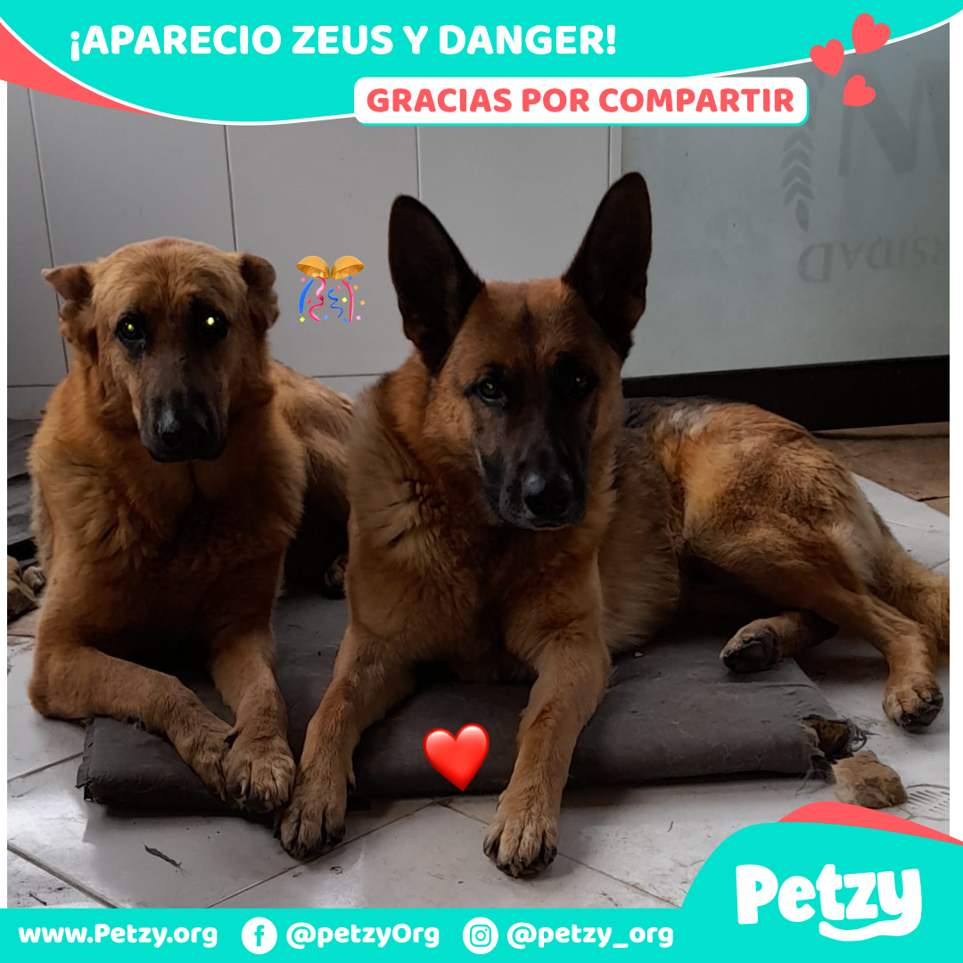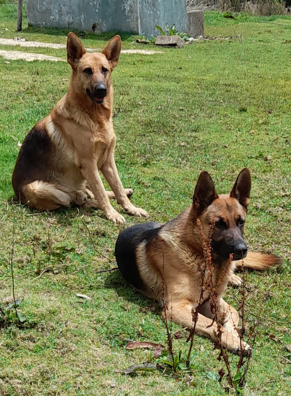 Zeus y Danger🐶 se habian perdido en Bogotá, Usme Vereda El Hato el dia martes 31 de enero de 2023. Zeus y Danger Son dos perritos de raza pastor Alemán, son amarillos con manto negro, tamaño grande aprox. 50 kilos; Zeus tiene 8 años y Danger 2 años. En el momento que se extraviaron NO tenían puesto ningún accesorio.