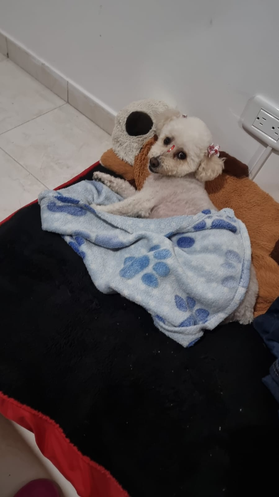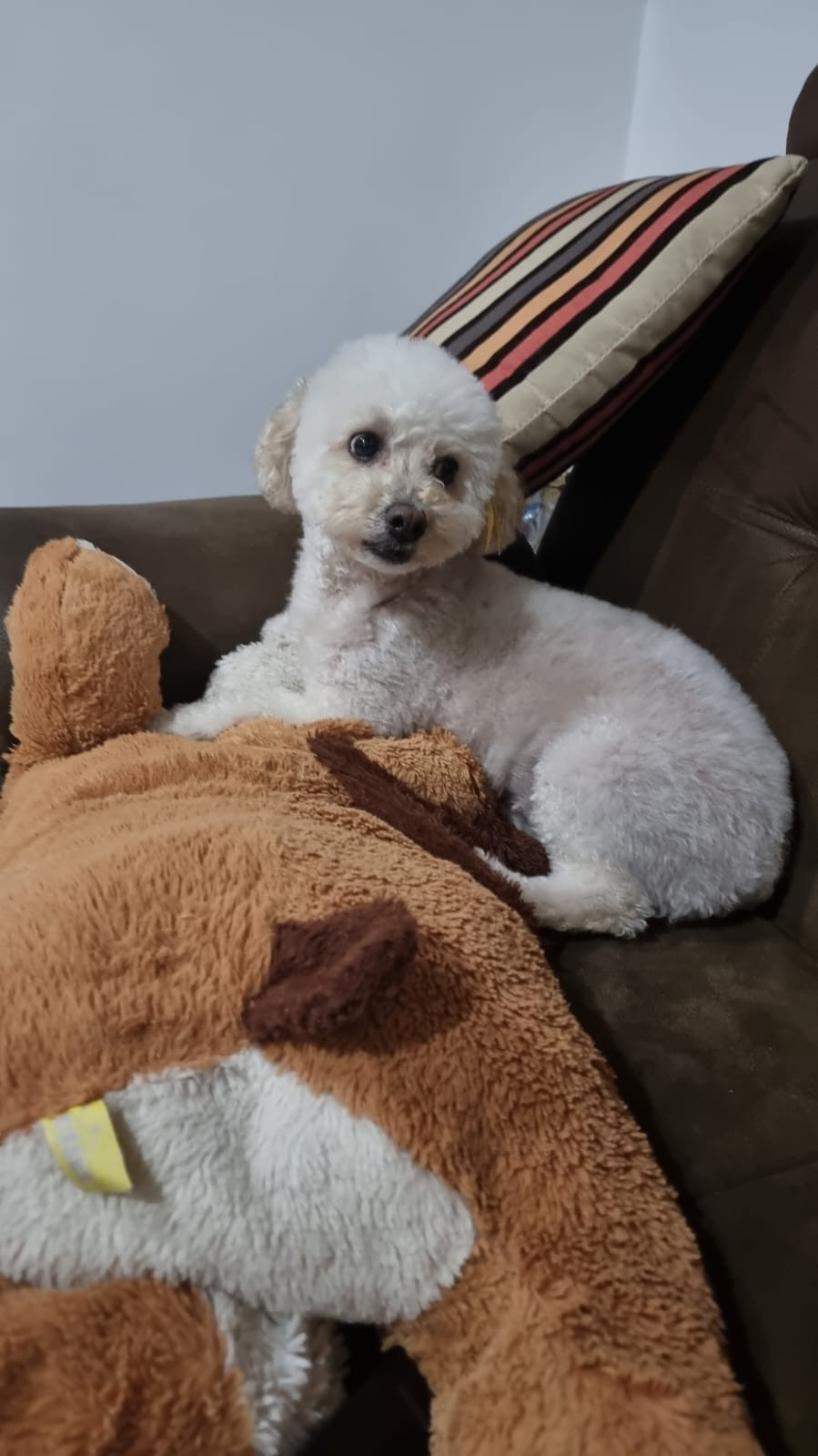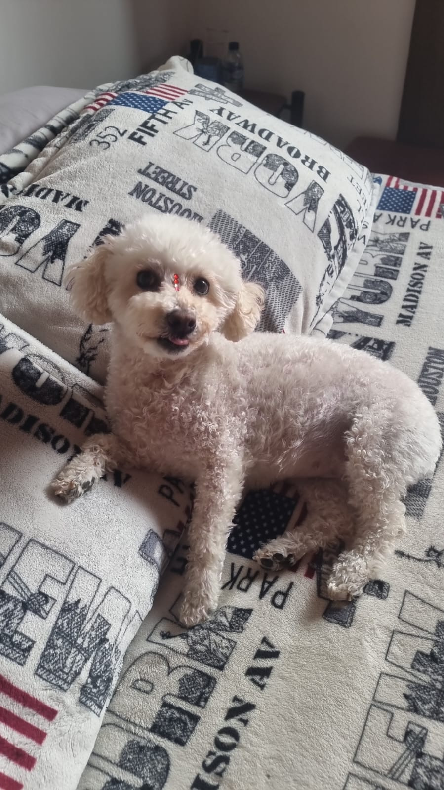 Lupe🐶 se habia perdido en Bogotá, Barrio la alquería y la fragua y sus alrededores el dia miércoles 1 de febrero de 2023. Lupe es Es una perrita, hembra, de raza French poddle mini toy, es de color blanco, sus orejas son de color crema, los ojitos son grandes, negros muy redondos, no tiene cola, tiene una cicatriz desde bebe en el cuello y otra en su patica, las cicatrices son de color negro que es lo que más la identifica. sufre daño hepatico pues Sufre de higado graso y toma un medicamento costoso para el tratamiento de su enfermedad, no tiene cura y este lo necesita para llevar una vida normal que vale 145.000 cada 15 días. En el momento que se extravió NO tenía puesto ningún accesorio.