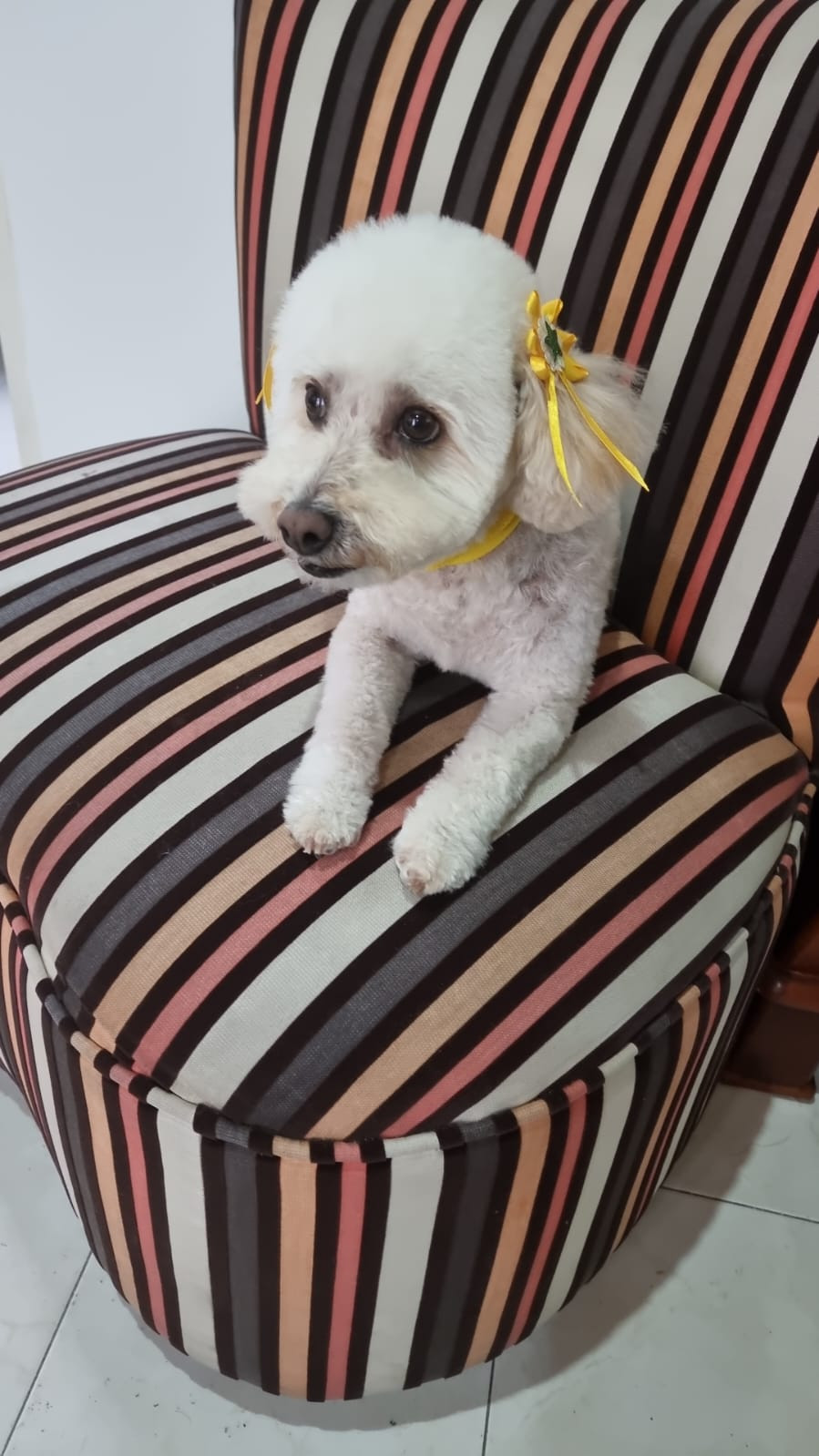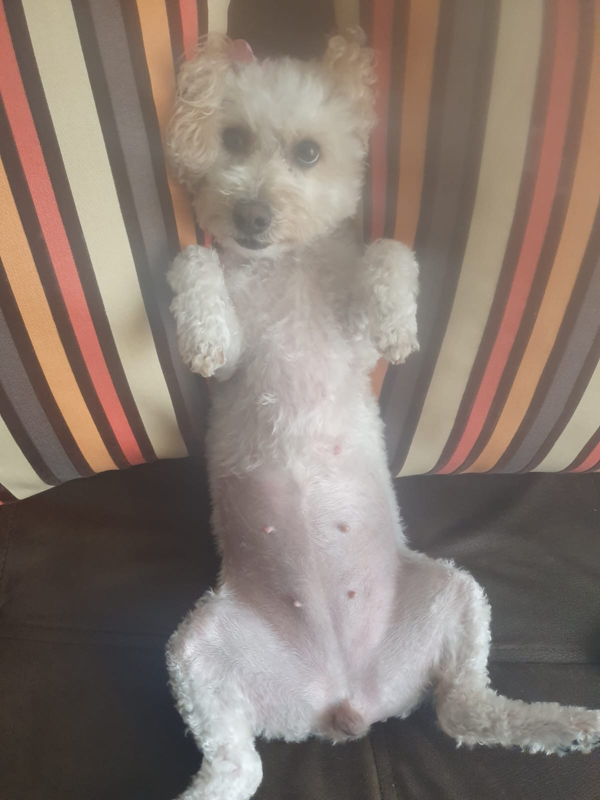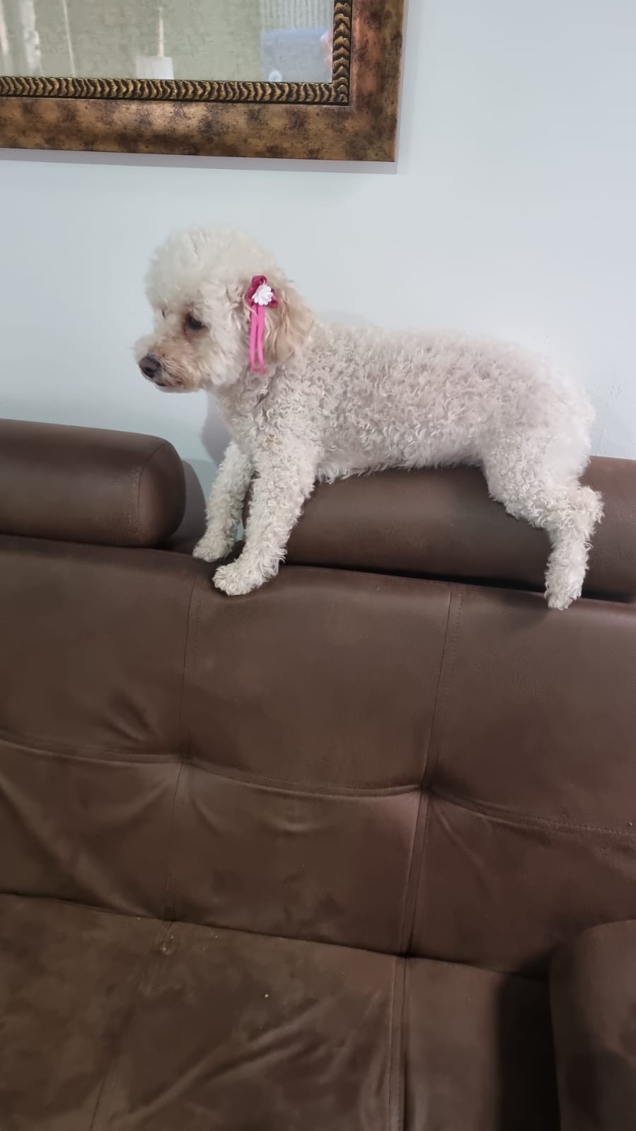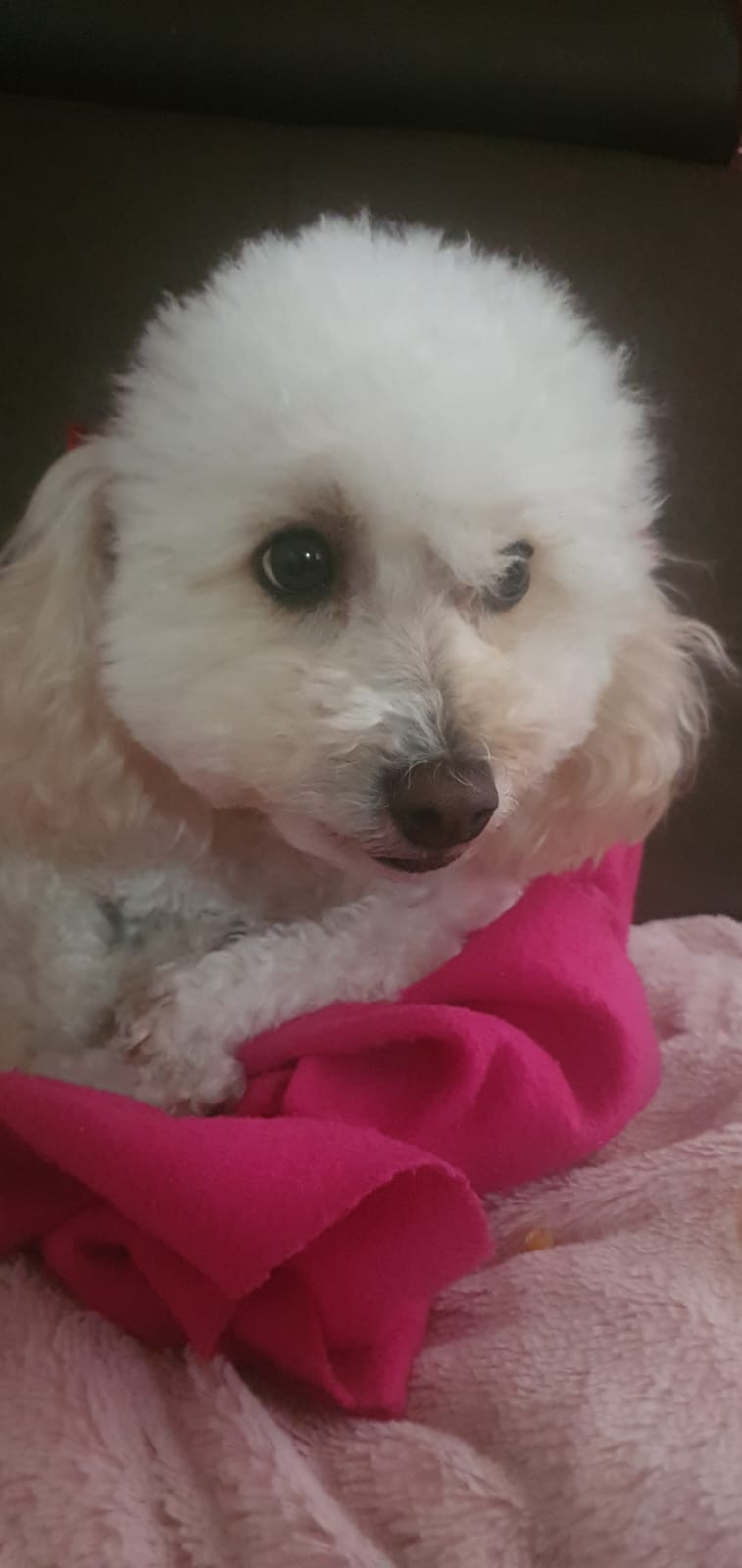 Lupe🐶 se habia perdido en Bogotá, Barrio la alquería y la fragua y sus alrededores el dia miércoles 1 de febrero de 2023. Lupe es Es una perrita, hembra, de raza French poddle mini toy, es de color blanco, sus orejas son de color crema, los ojitos son grandes, negros muy redondos, no tiene cola, tiene una cicatriz desde bebe en el cuello y otra en su patica, las cicatrices son de color negro que es lo que más la identifica. sufre daño hepatico pues Sufre de higado graso y toma un medicamento costoso para el tratamiento de su enfermedad, no tiene cura y este lo necesita para llevar una vida normal que vale 145.000 cada 15 días. En el momento que se extravió NO tenía puesto ningún accesorio.