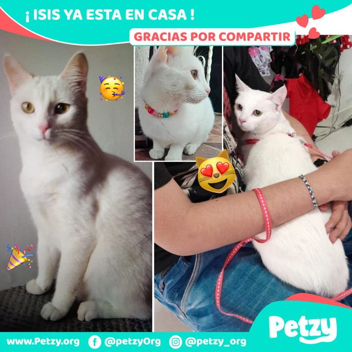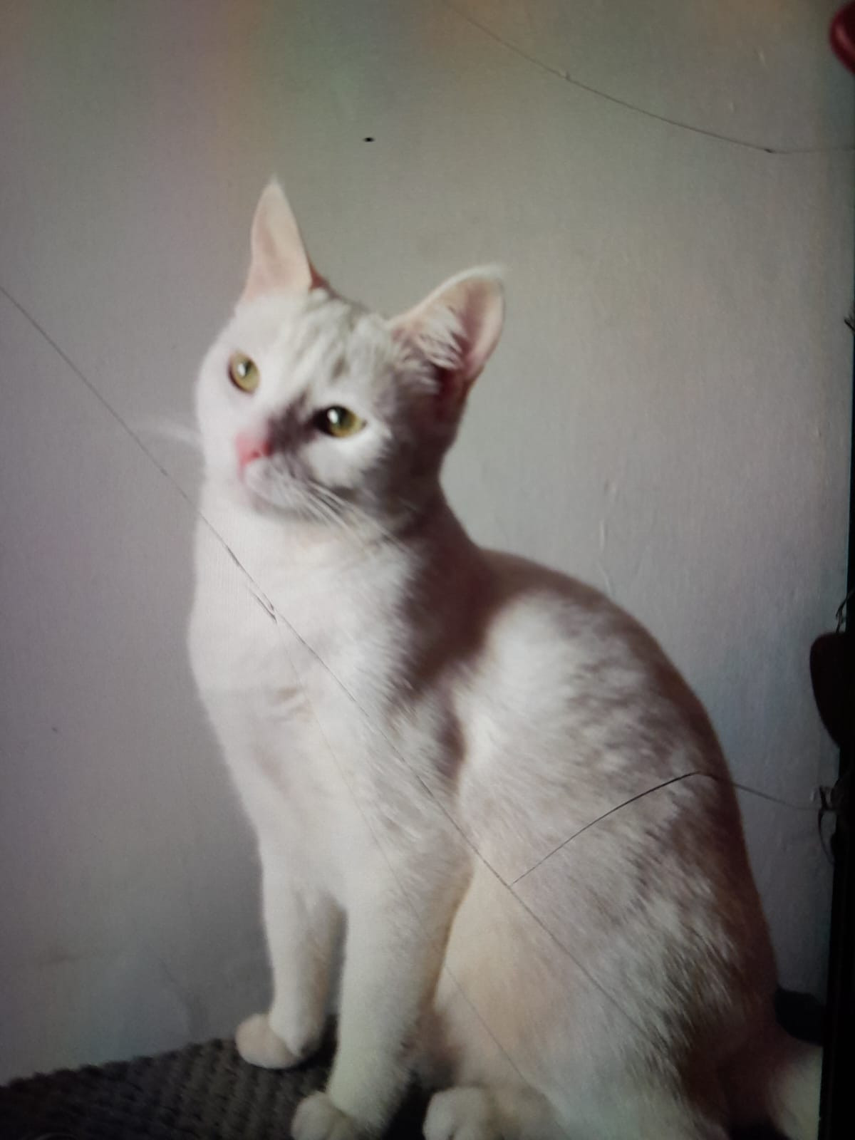 Isis se habia perdido en Popayan, barrio Santa Helena el dia domingo 12 de febrero de 2023. Isis es totalmente blanca, de carita pequeña, su contextura es mediana, tiene ojitos amarillos.El día q se extravio llevaba puesto un collar de bolitas doradas y rosadas con un dije del planeta saturno