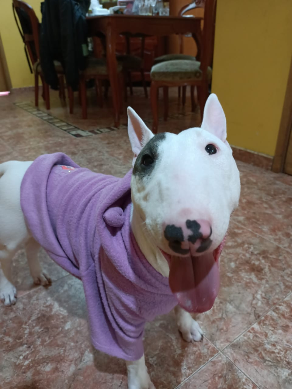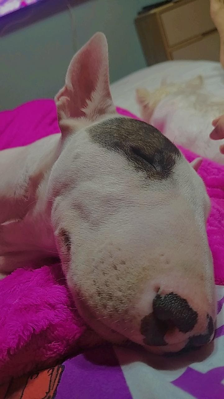 ✅ Es una perrita blanca con una mancha en el ojo derecho. Tiene la cicatriz de la esterilización que fue reciente y una cicatriz en la pata trasera derecha de una cauterización de una verruga.