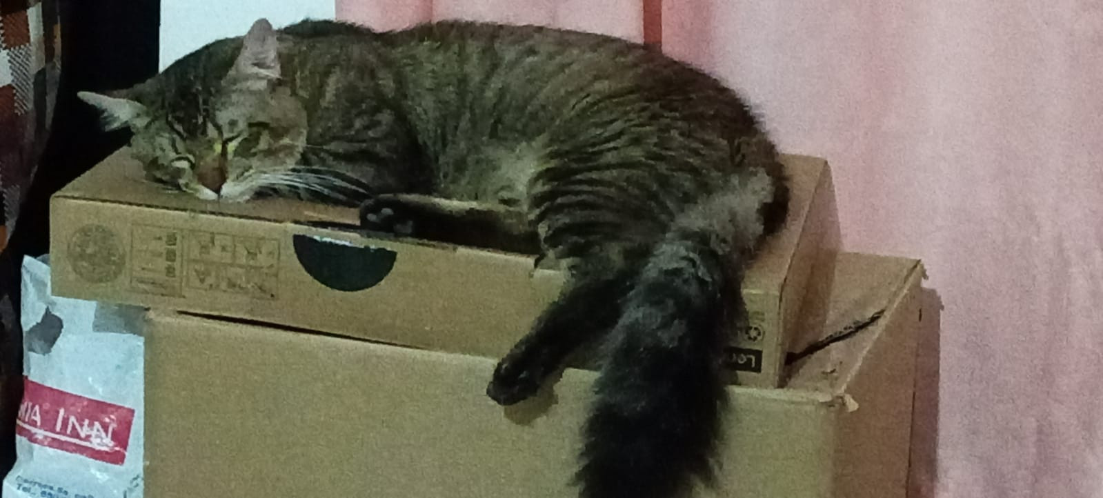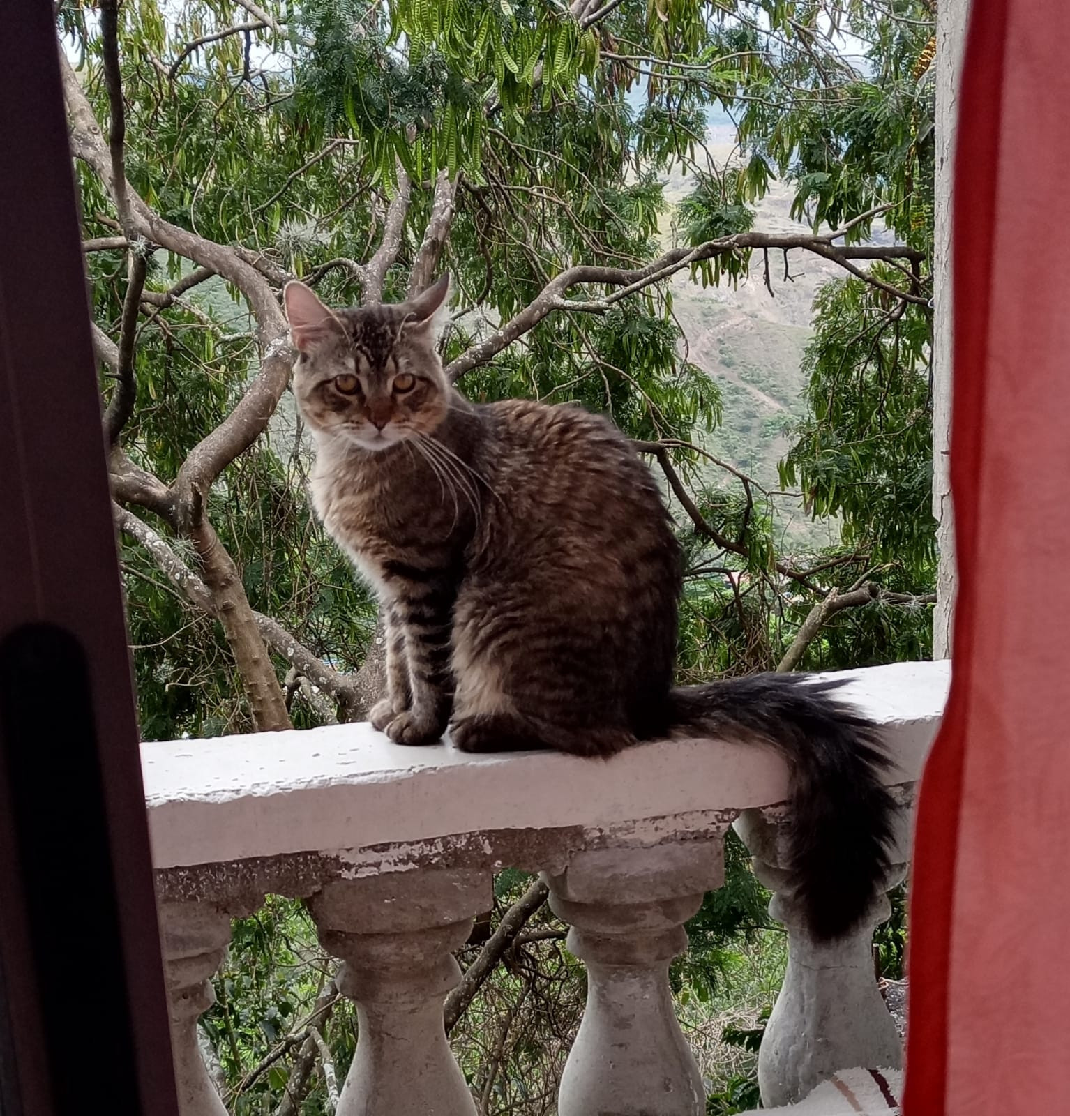 ✅ Es un gatico, macho, pardito, tiene una peladura en la cola porque se le hizo un tratamiento por mordida de otro animal y el veterinario le hizo tratamiento.