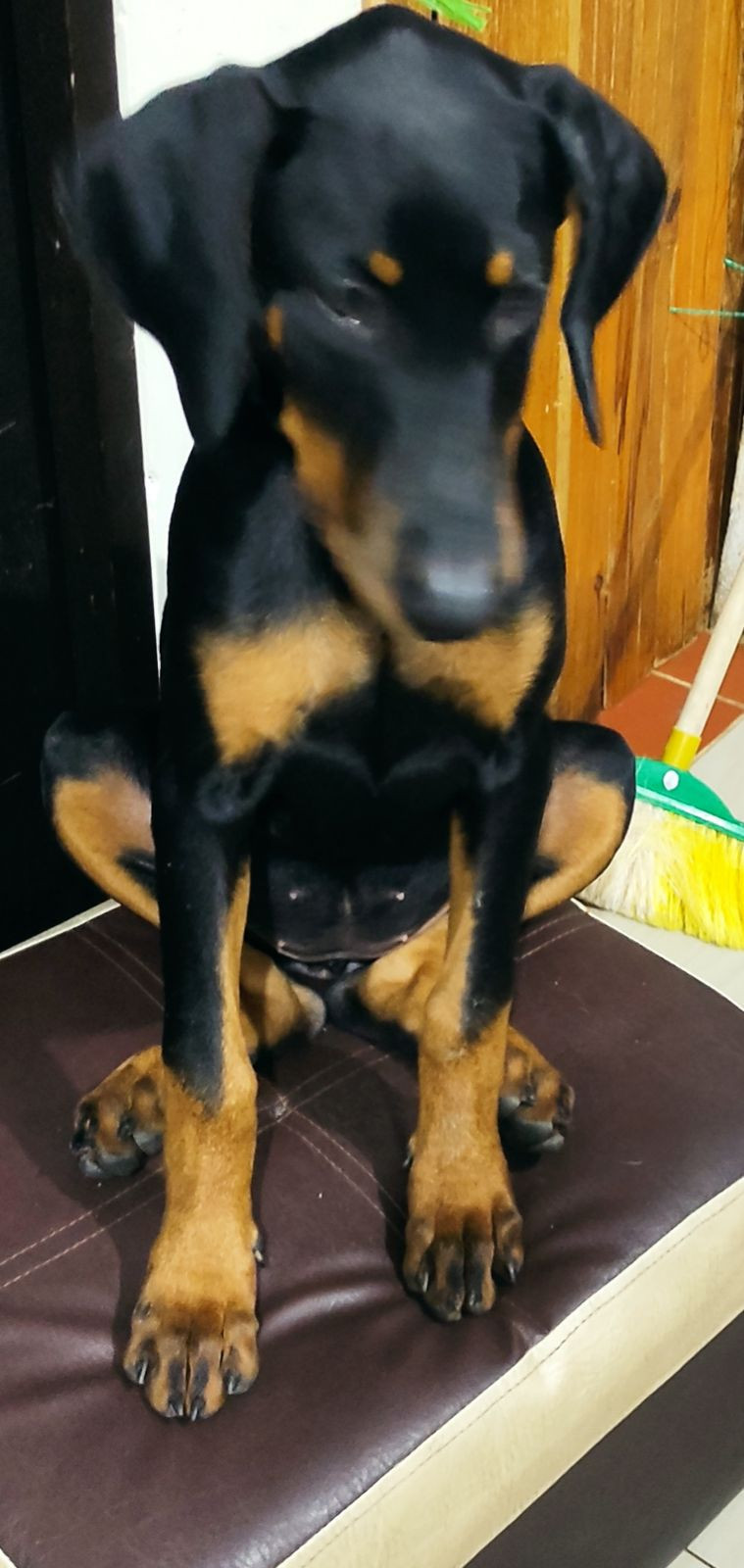 ✅ Es una perrita negra, patas y manos amarillas, coli mocha, mirada profunda, es juguetona, amorosa y es grande o muy alta.