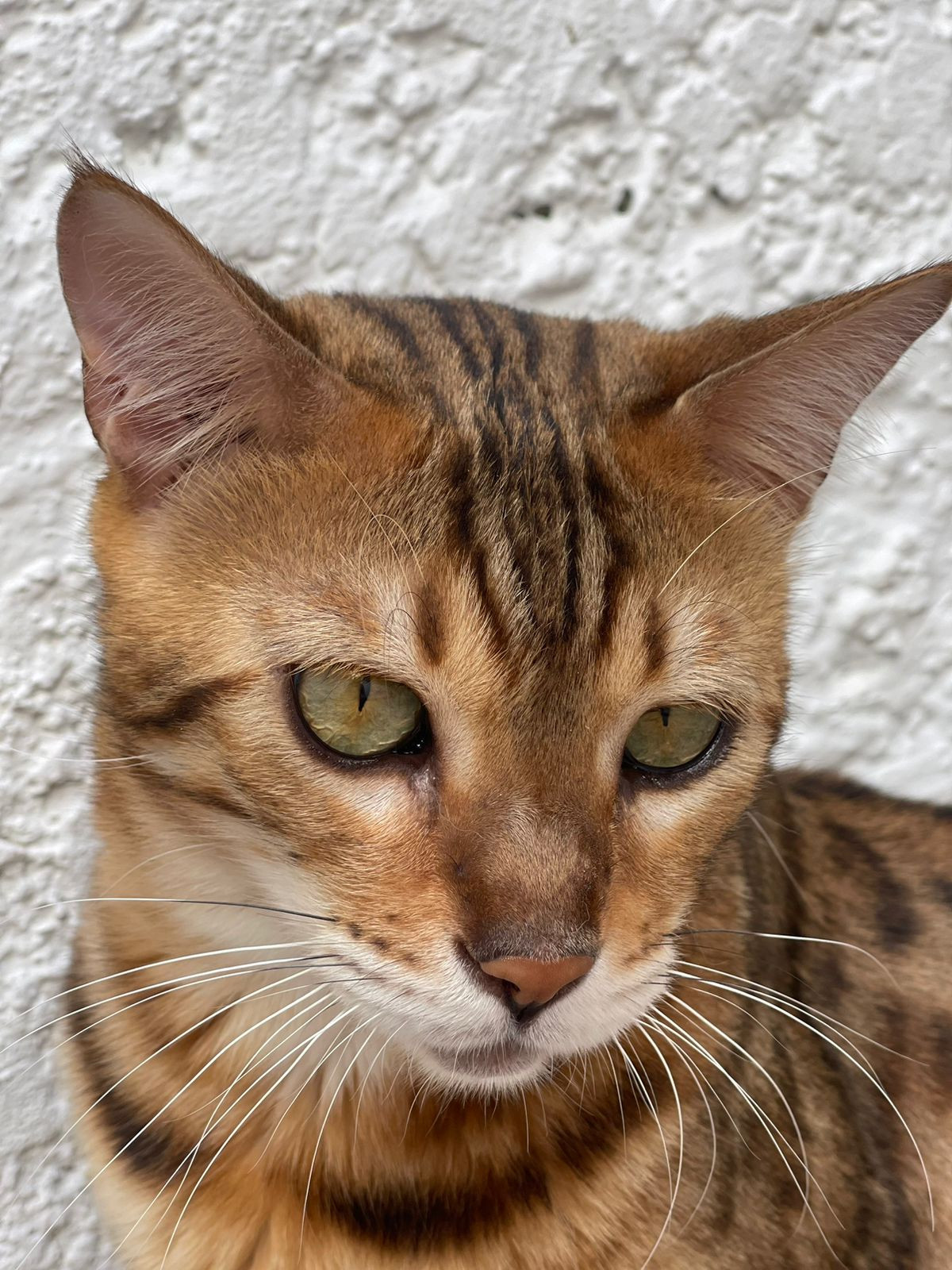 ✅ Es atigrado, delgado, estructura pequeña, ojo izquierdo más pequeño por cirugia.