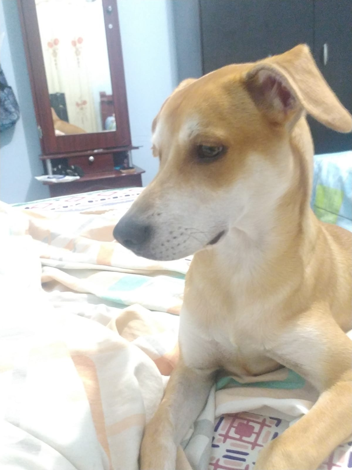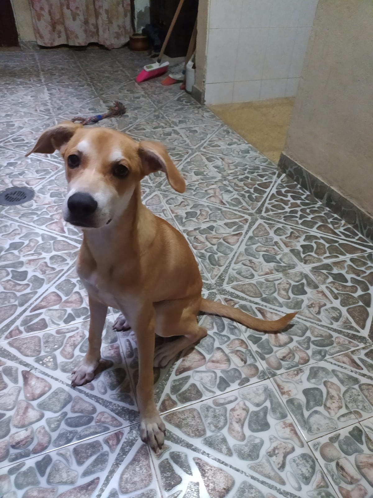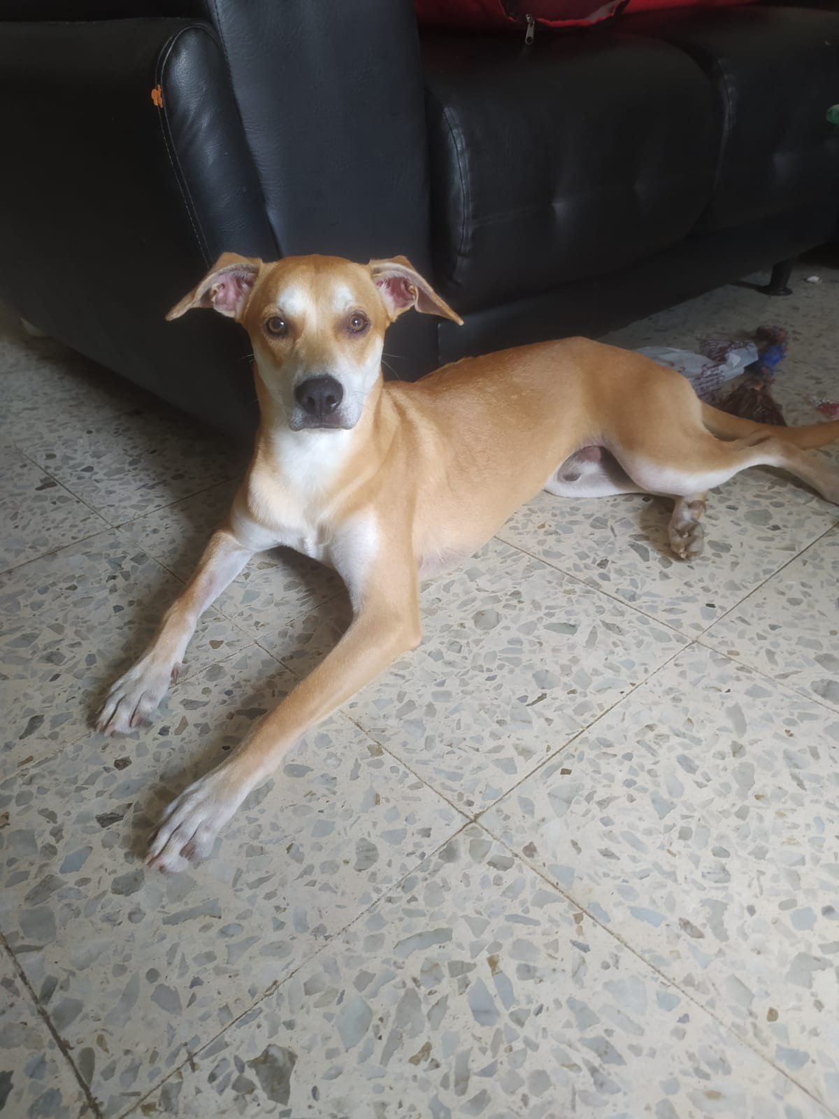 ✅ Es un perrito de raza grande, ojos claros, tiene un rasponsito en la parte arriba por qué se le callo el cabello en esa parte, es muy juguetón con otros perros amigable y cariñoso, no es bravo. En la cara y nariz tiene partes blancas y las patas no muy blancas.