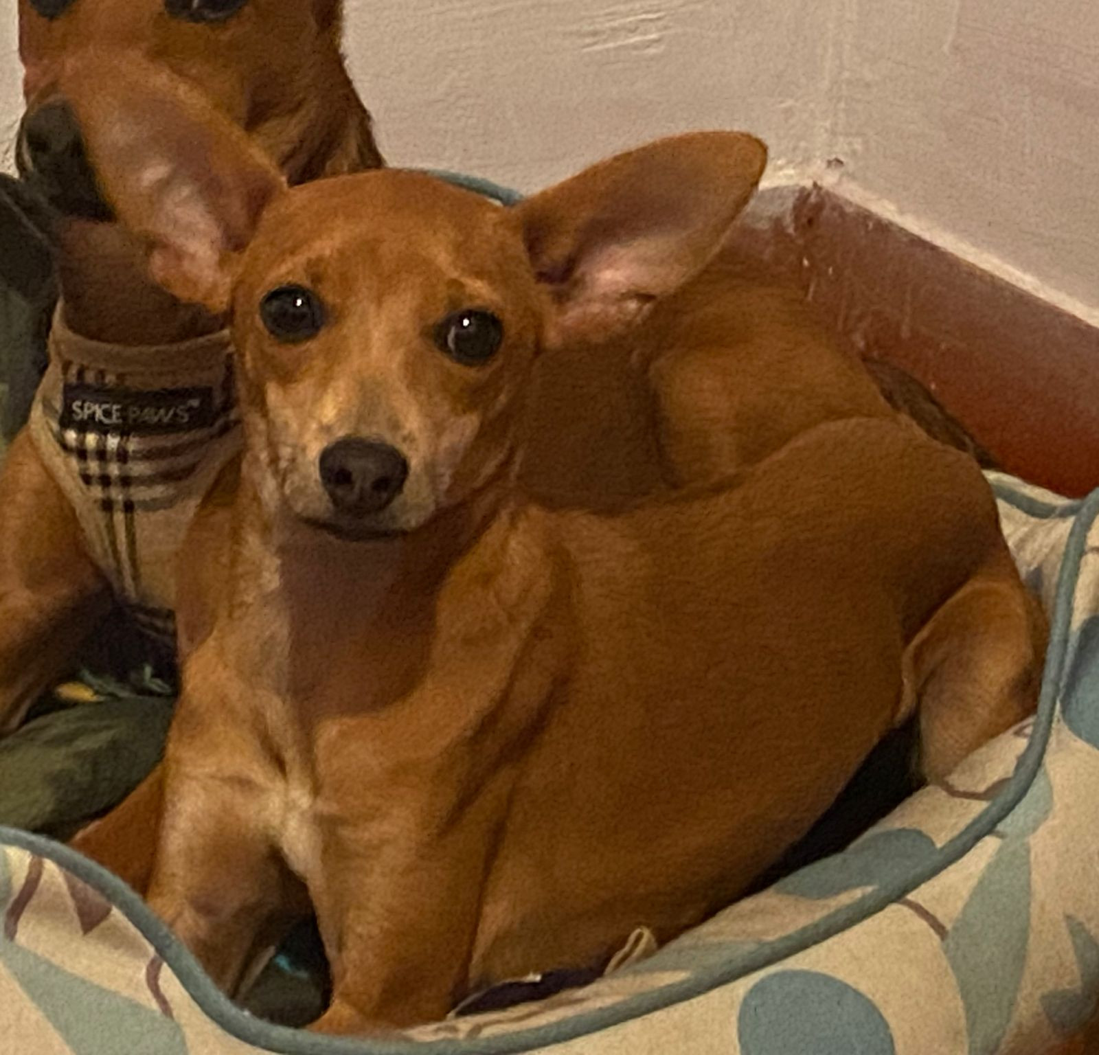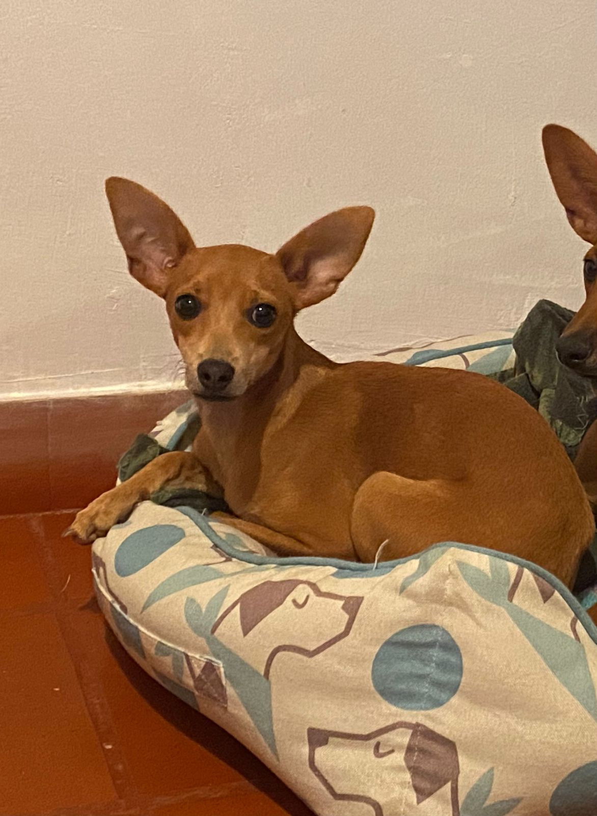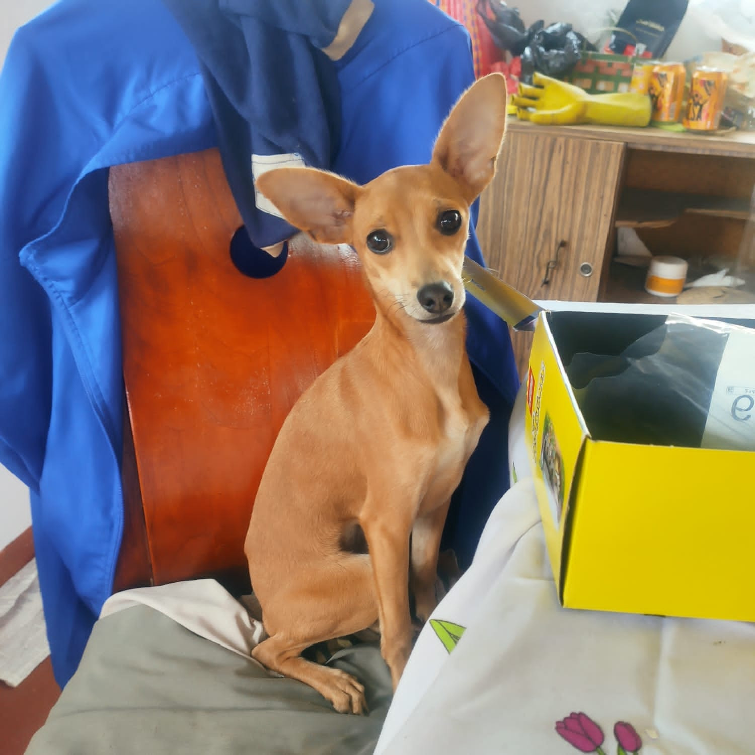 ✅ Es una perrita de color miel, tiene sus patas largas, es flaquita, las orejas son levantadas en punta, cola larga, es de pelo corto, es nerviosa, tiene un lunar en la quijada bien característico.