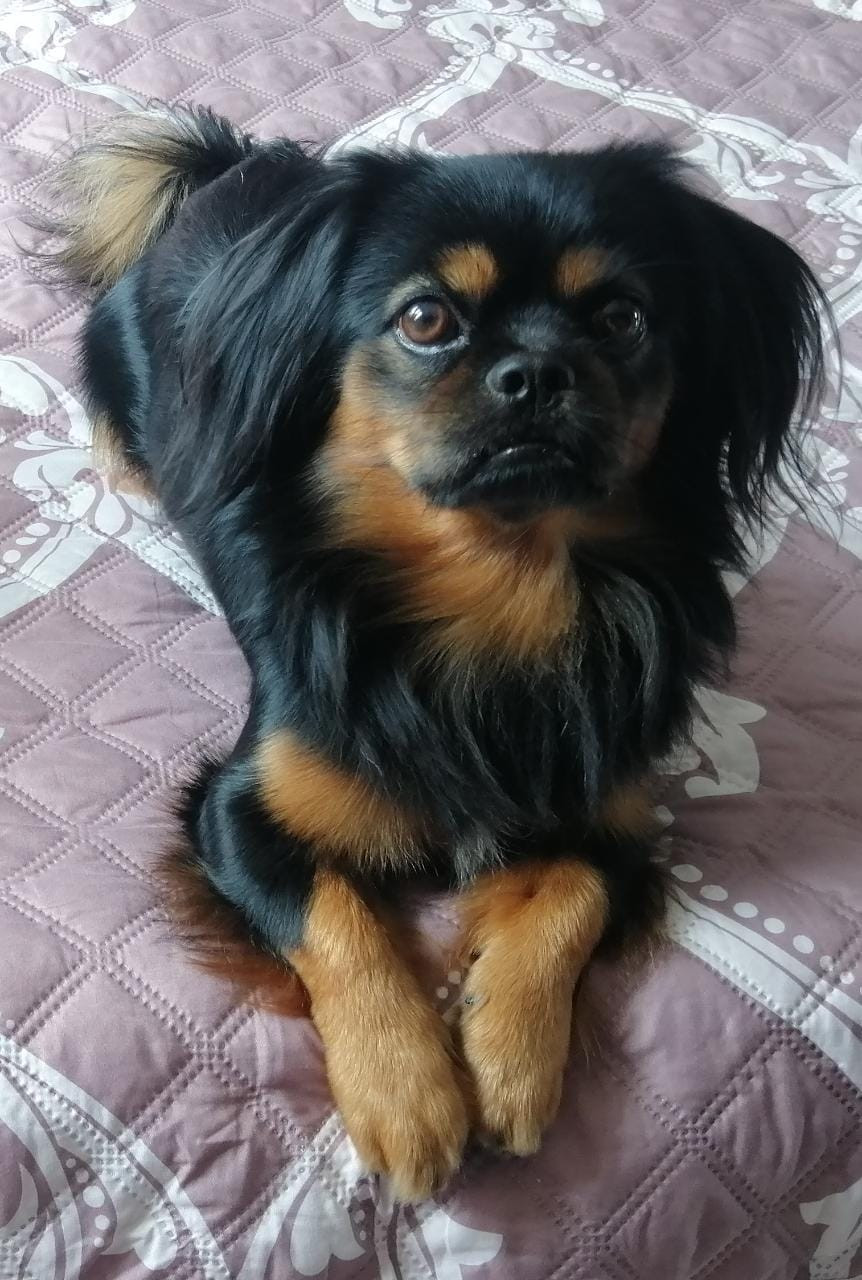 ✅ Es un perrito, macho, tiene dos puntos cafes sobre los ojos y otro en la parte del pecho y patas y en el pecho una mancha blanca.
