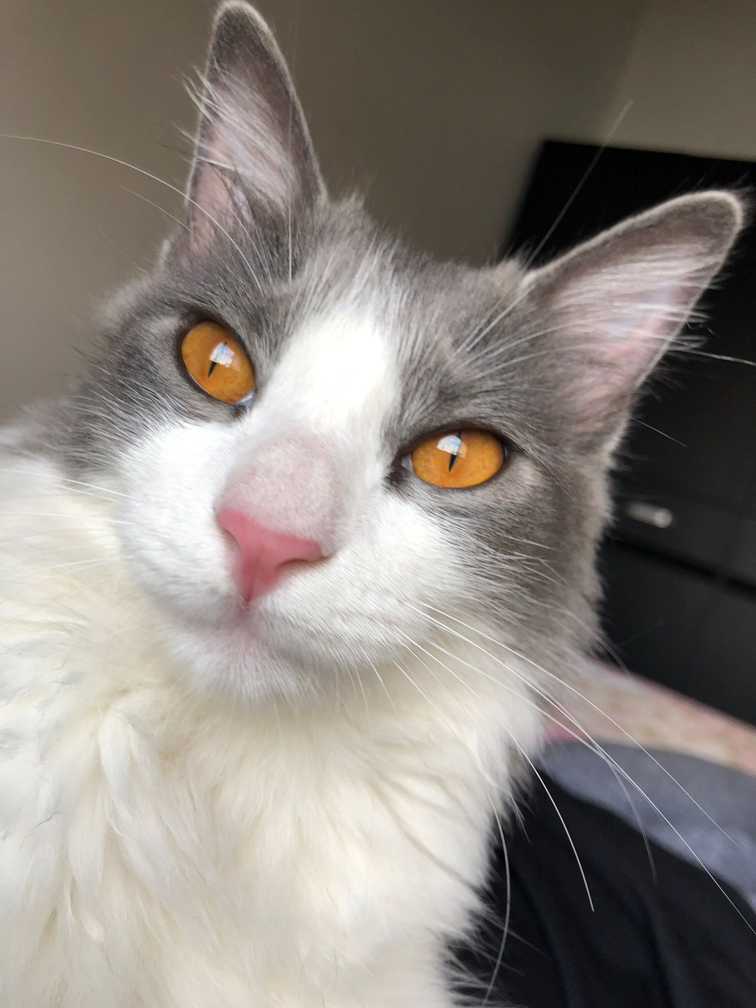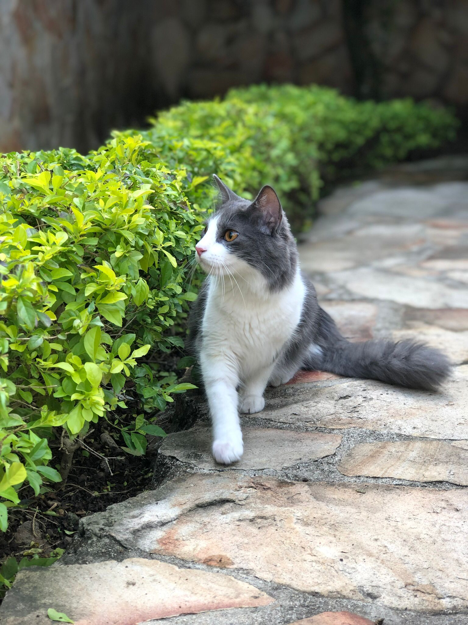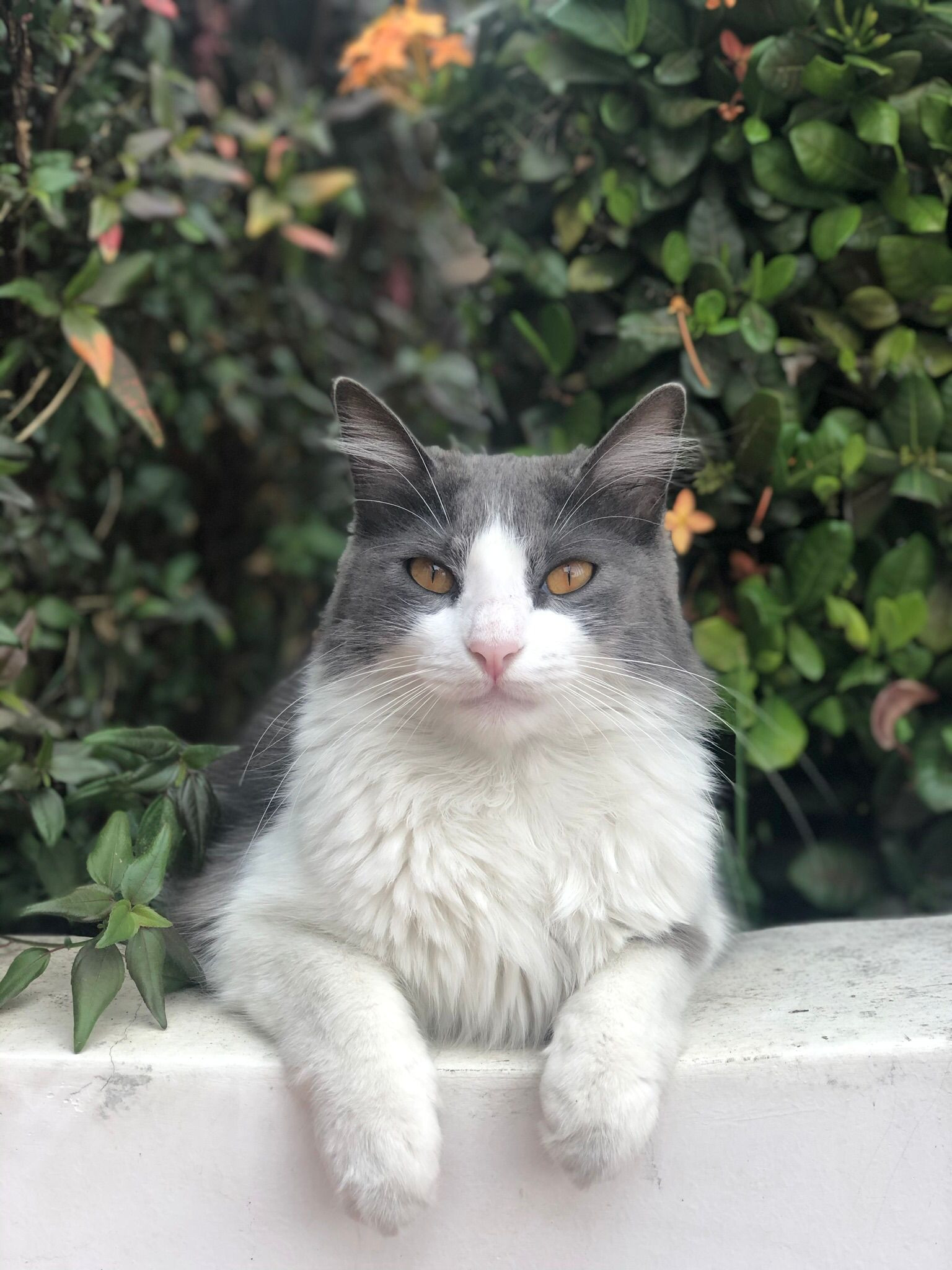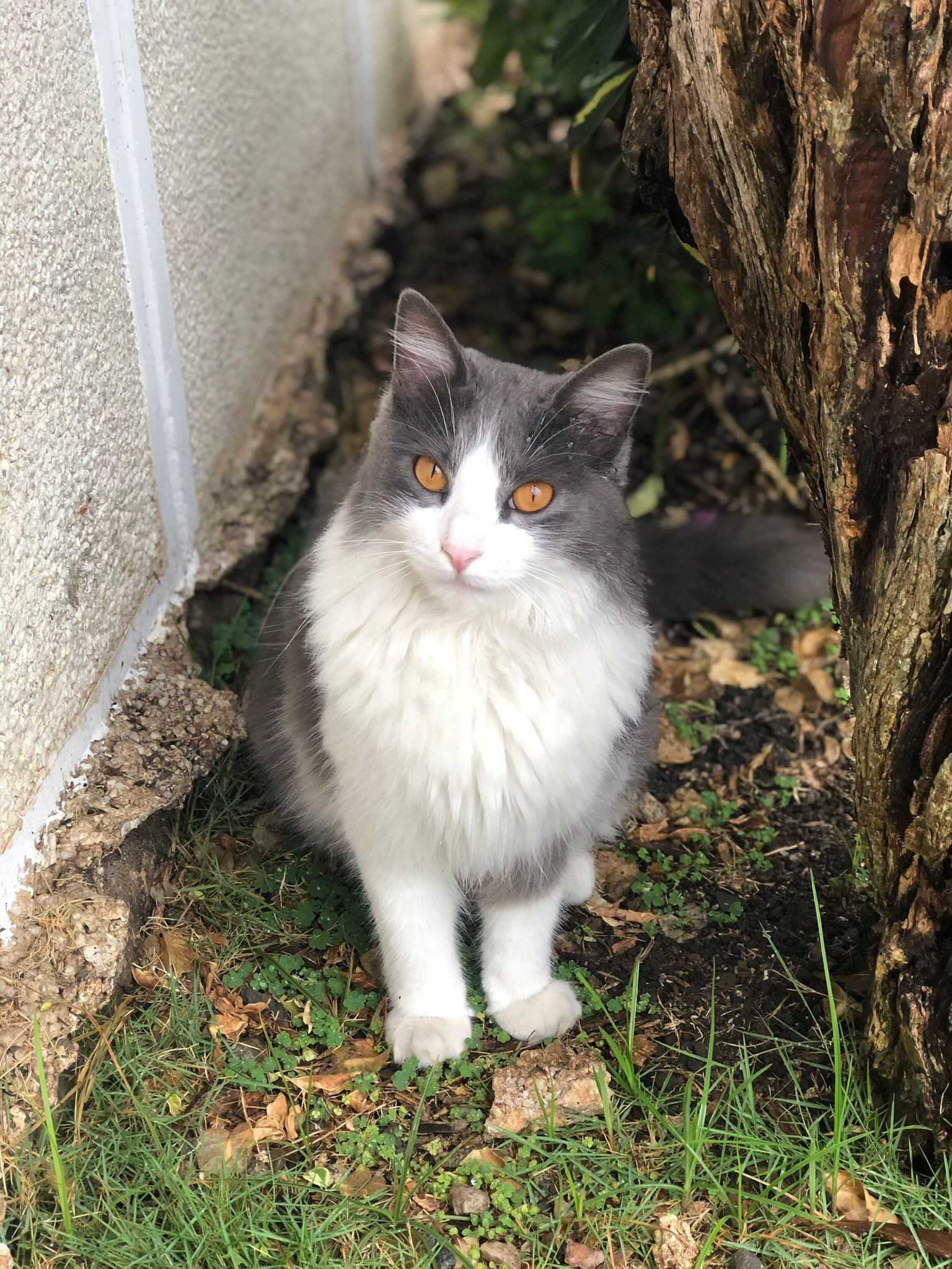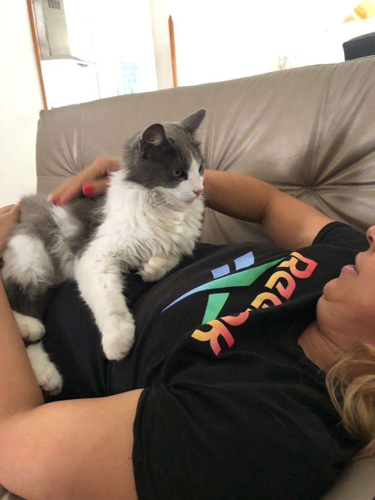 ✅ Es un gata de color blanco con gris de bastante pelo, tiene una mancha de color blanco en el lomo. Le gusta el guacal, atiende cuando se le llama con la bolsa de la comida, Se perdió por los lados de la Iglesia Provenza.