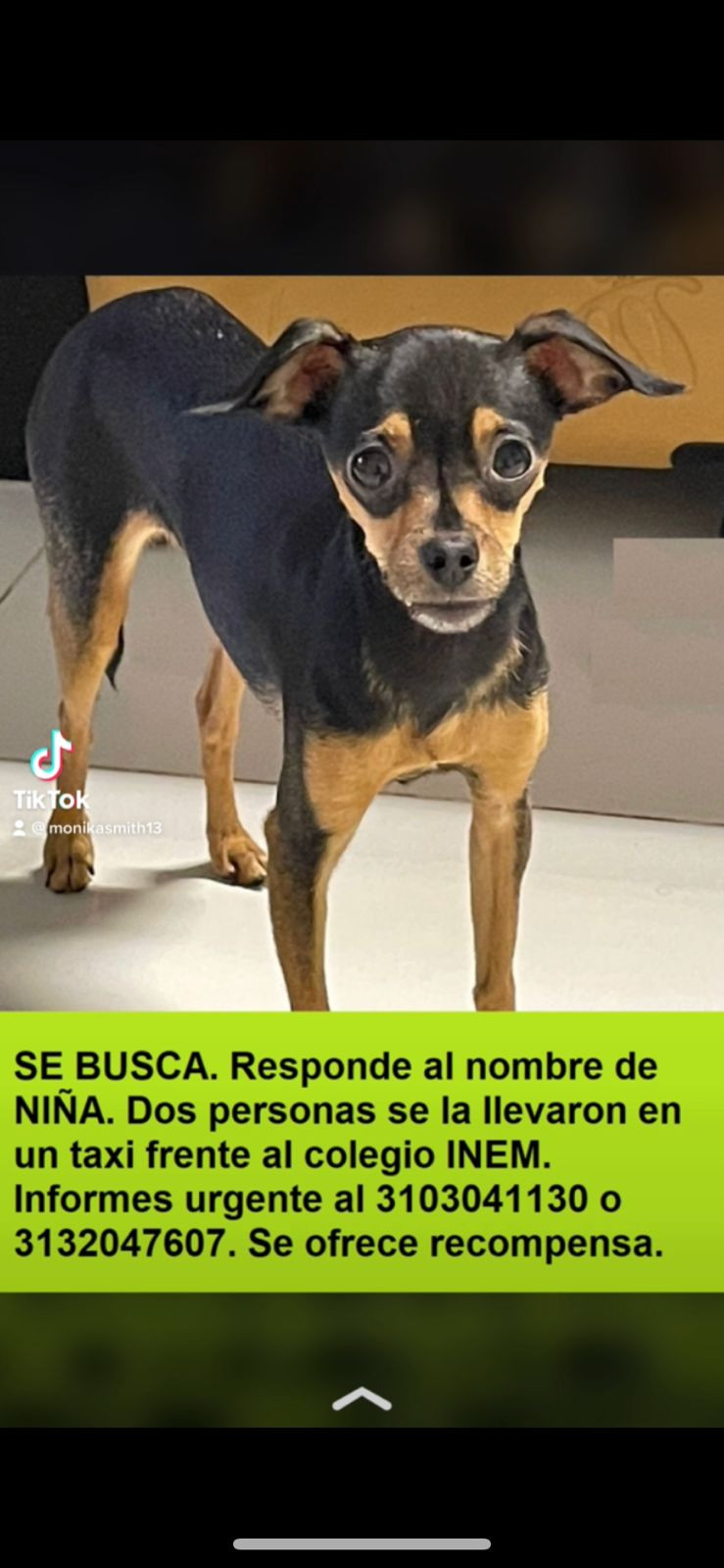 Si la ves, puedes darle hogar de paso 🏡 mientras su familia la recoge🙏 También puedes escribirnos 📩 al Messenger de Petzy, por DM o a nuestra línea ☎️ Whatsapp +57 313 349 7682.