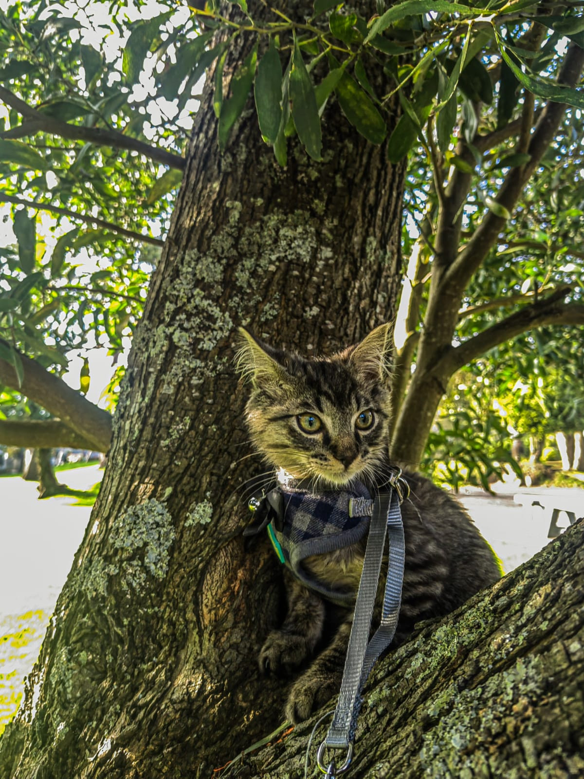 ✅ Es un gatico, macho, es de color gris con rayas, barbado en el cuello y de cola peluda.