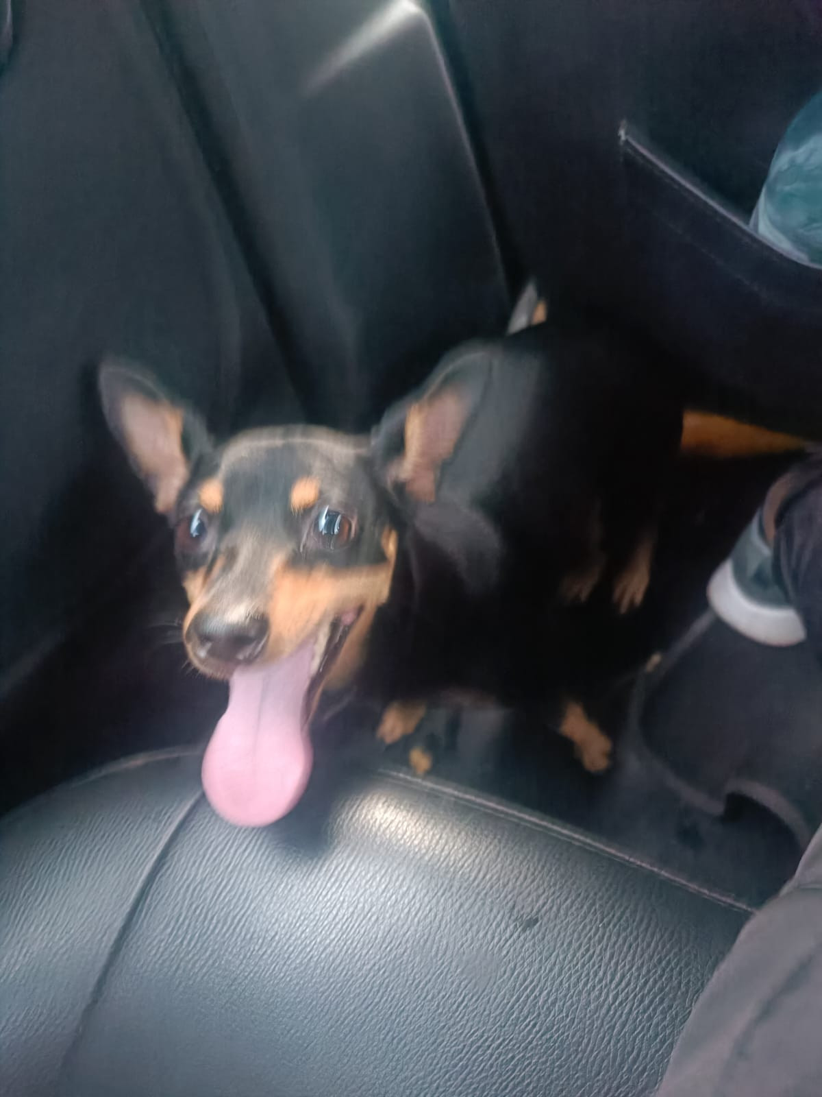 ✅ Es una perrita negra con óxido en la cara y en las extremidades, cola semicorta, tiene una hernia umbilical, no está esterilizada, tiene como 30 cm de altura, tiende a ser esquiva y muy nerviosa.
