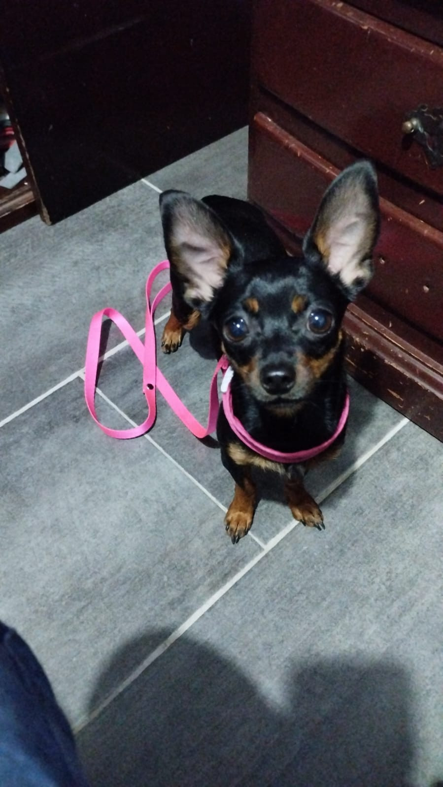 ✅ En el momento que se extravió tenía puesto un collar rosado.