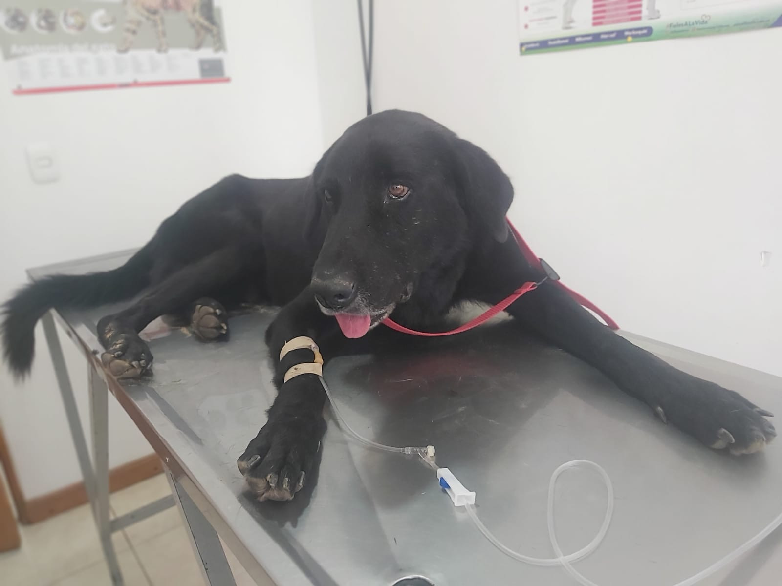 ✅ Es un perrito cruce de labrador, es grande negro, esta flaco.