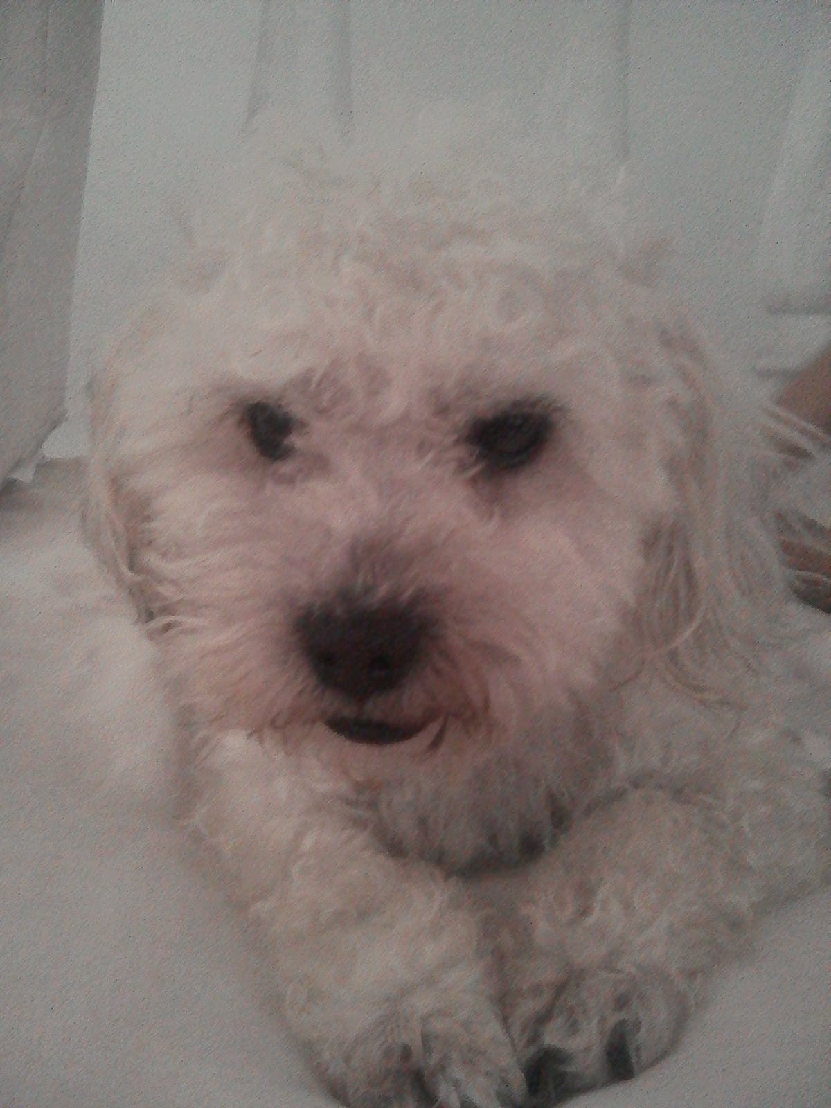 ✅ Es mediano, de color blanco y es muy cariñoso.