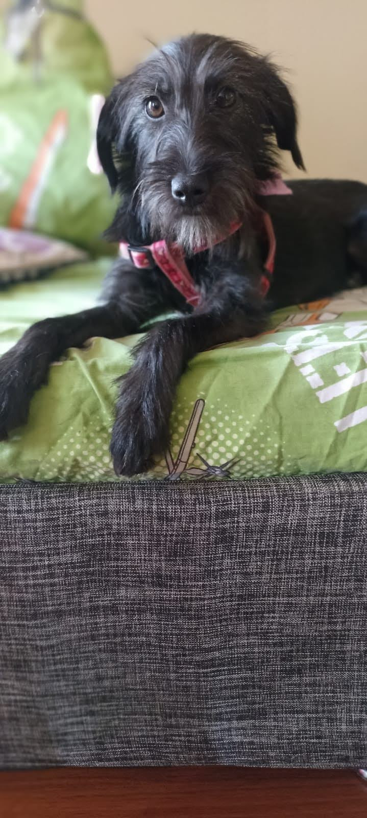 ✅ Cuando se perdió portaba collar tipo gargantilla color fucsia con bordes negros, es de tela, tiene taches plateados y es de chapa en donde cierra, es decir tipo correa.