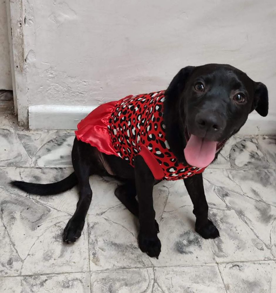 ✅ Pinina es una perrita criolla, mediana, negra con una manchita en forma de rayita blanca en el pecho, tiene un año y seis meses.