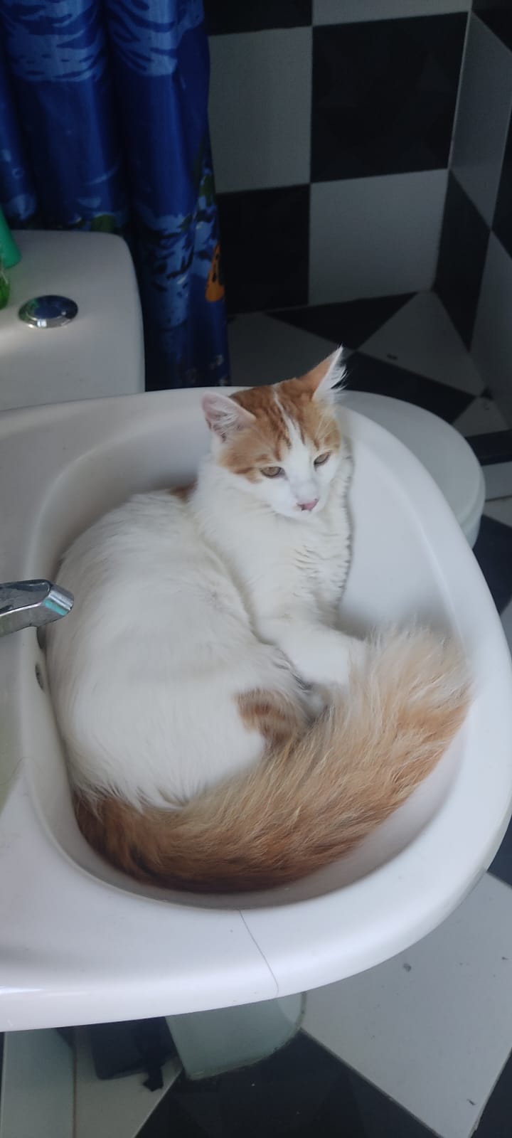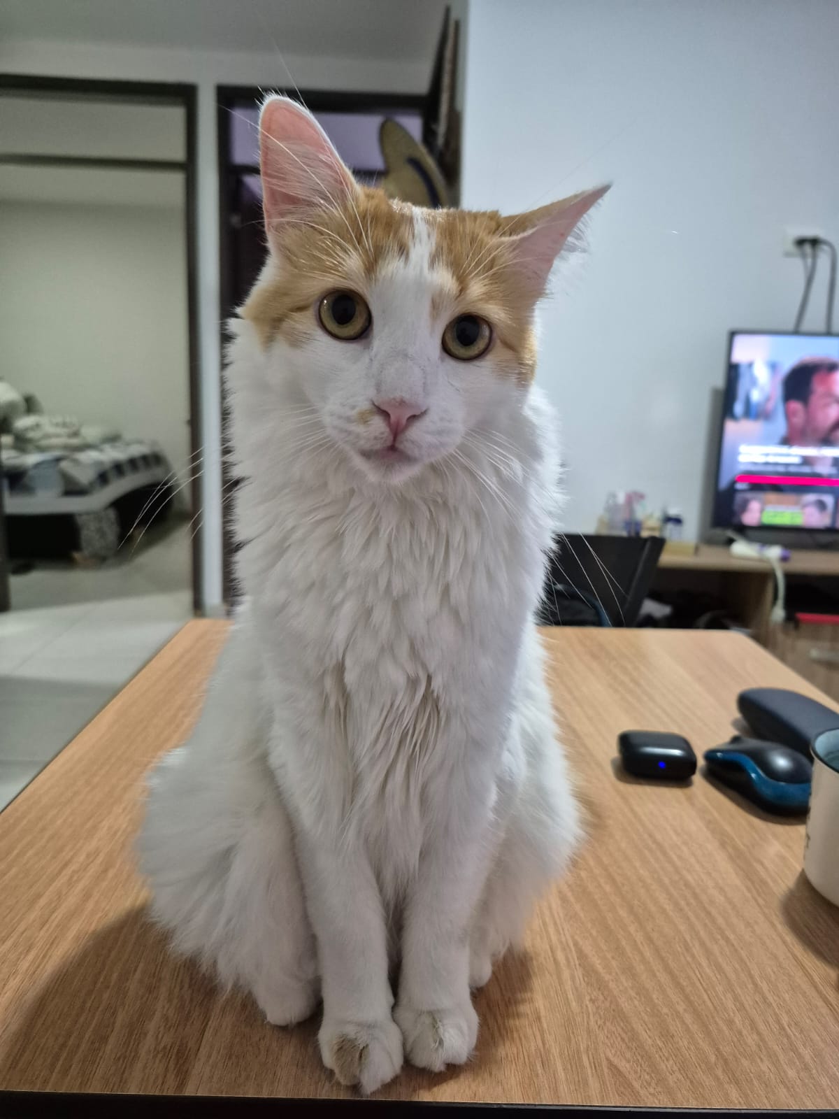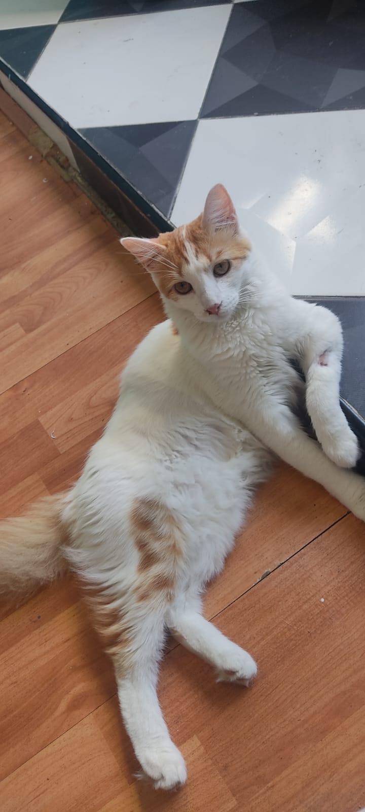 ✅ Es una gatita de 15 meses de edad, es un cruce de criolla mezclada con angora. Es blanca con amarillo. Es muy miedosa a los ruidos fuertes, nunca había salido a la calle así que estará muy desorientada.