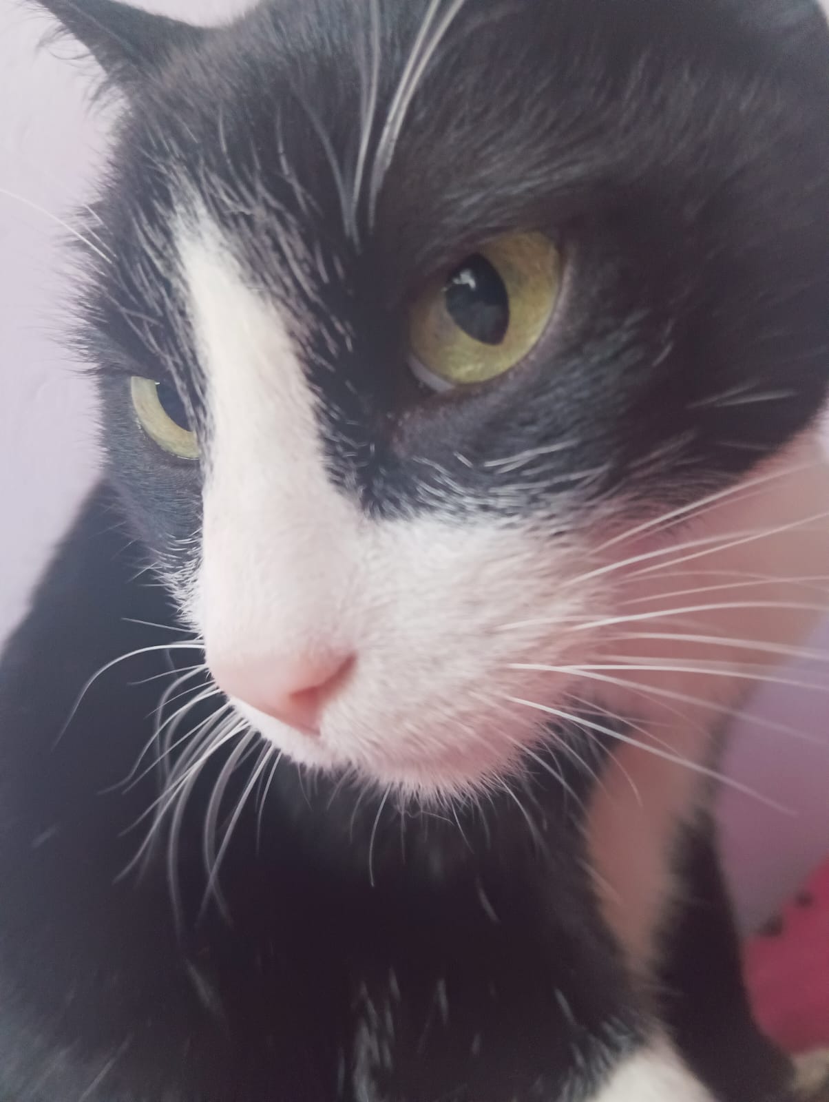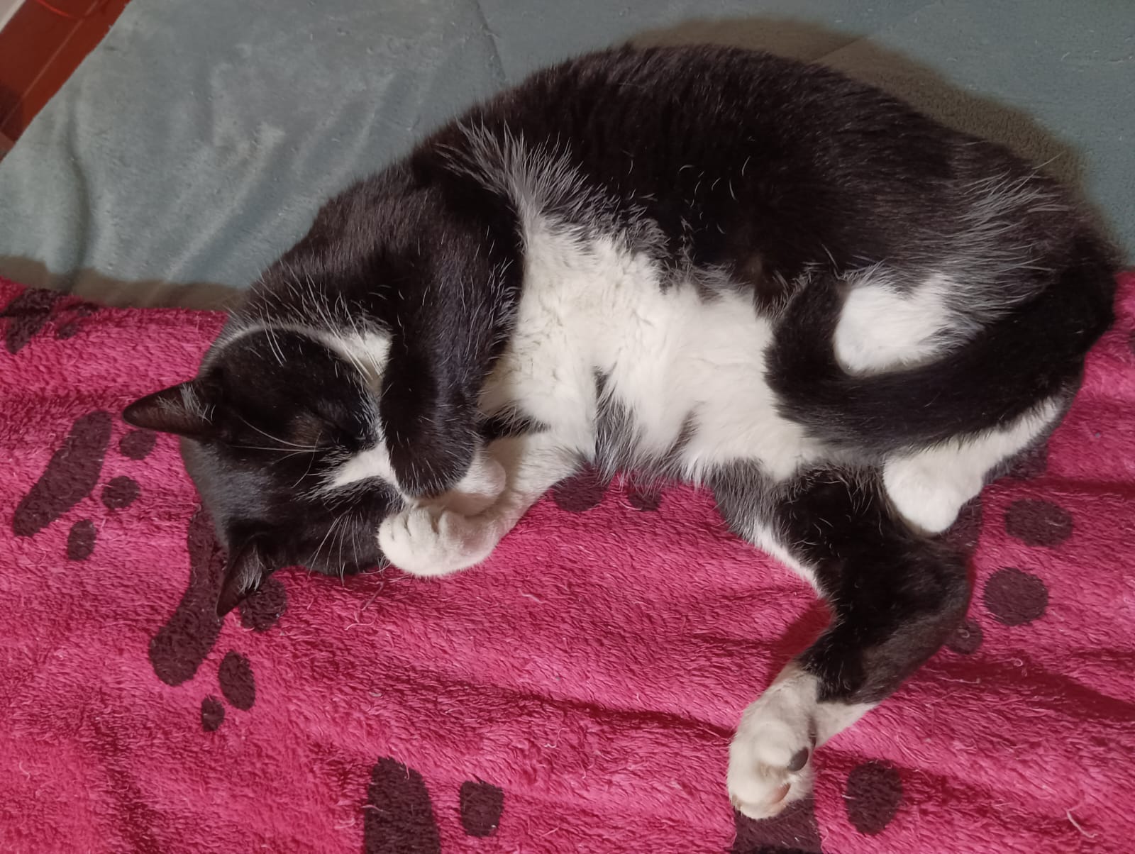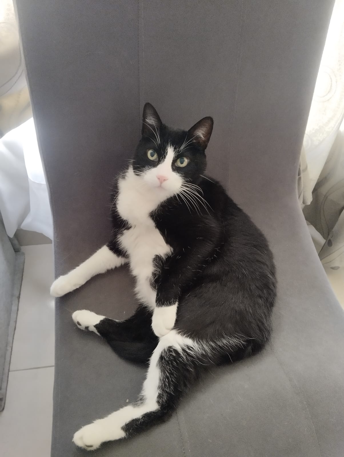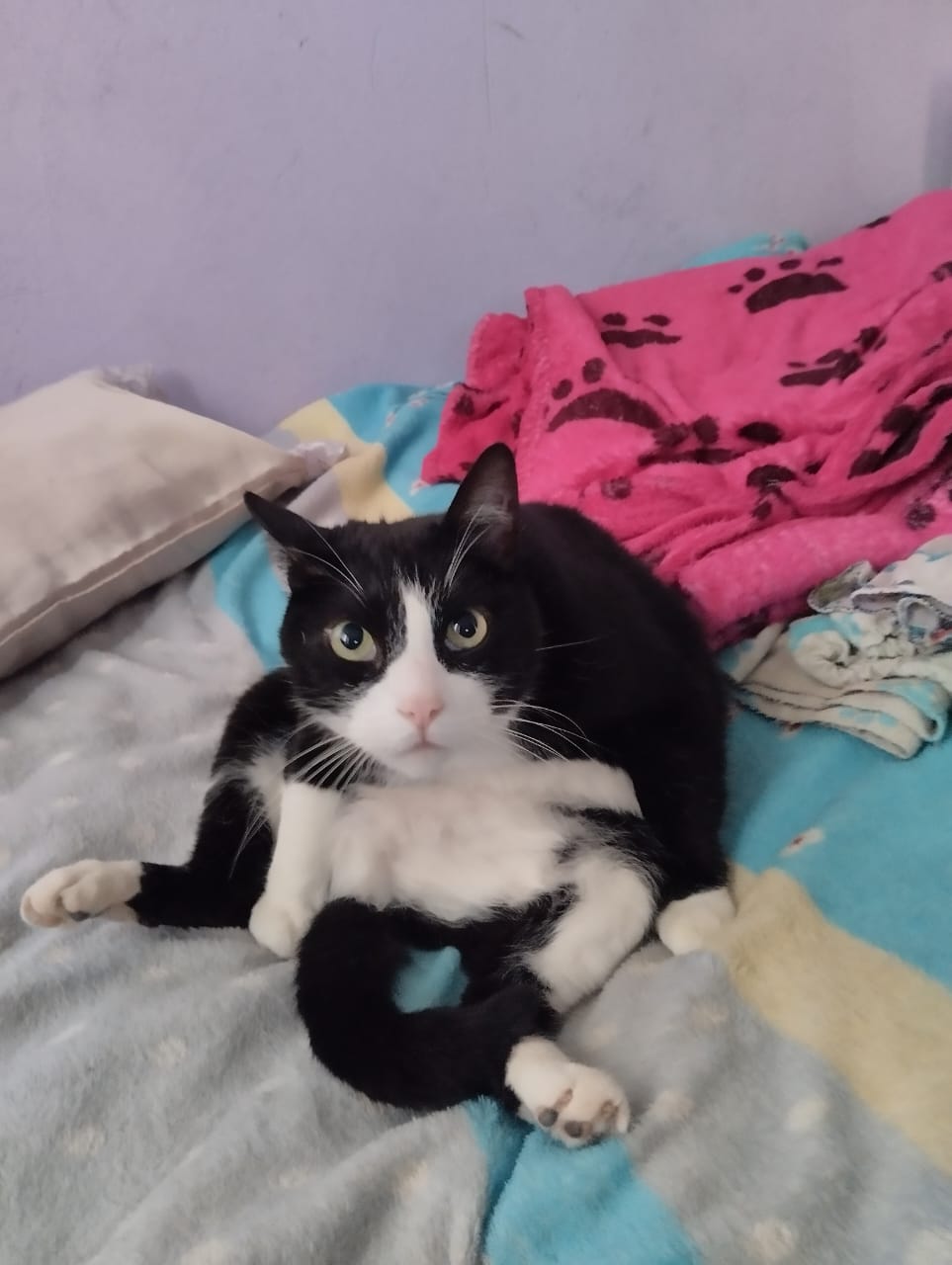 ✅ Es un gatito criollo blanco con negro, su señal particular es que, en la punta de la cola parece partida. Tiene 8 años de edad y esta esterilizado