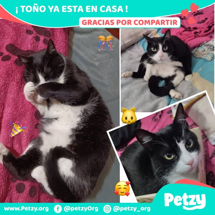 ¡Excelentes noticias! 🎉 Una hermosa historia de reencuentro. Toño, el gatito criollo blanco y negro, ha sido encontrado luego de estar perdido por 1 día en Bogotá, barrio San Eusebio. La alegría de su familia es indescriptible. 🐾✨