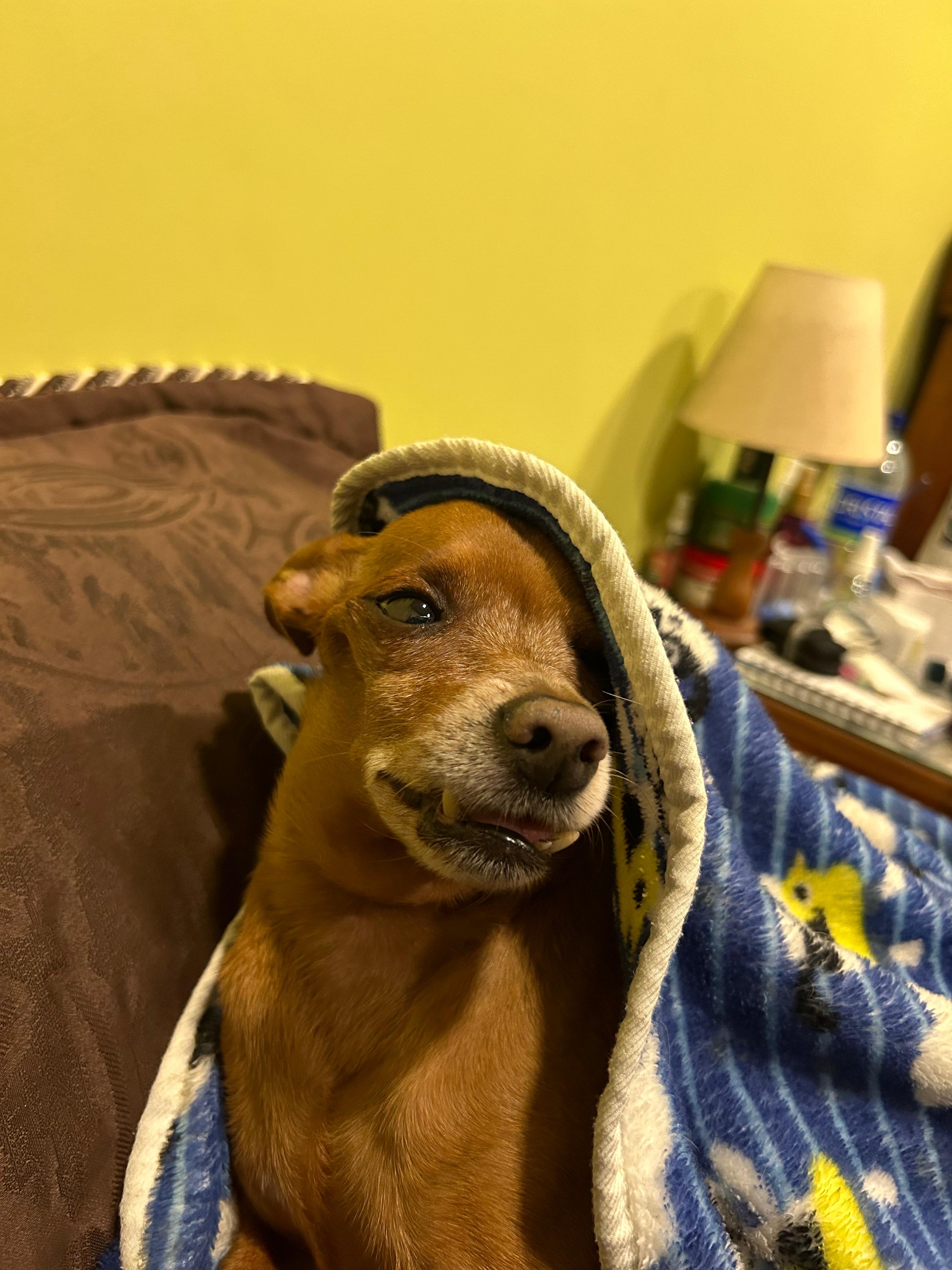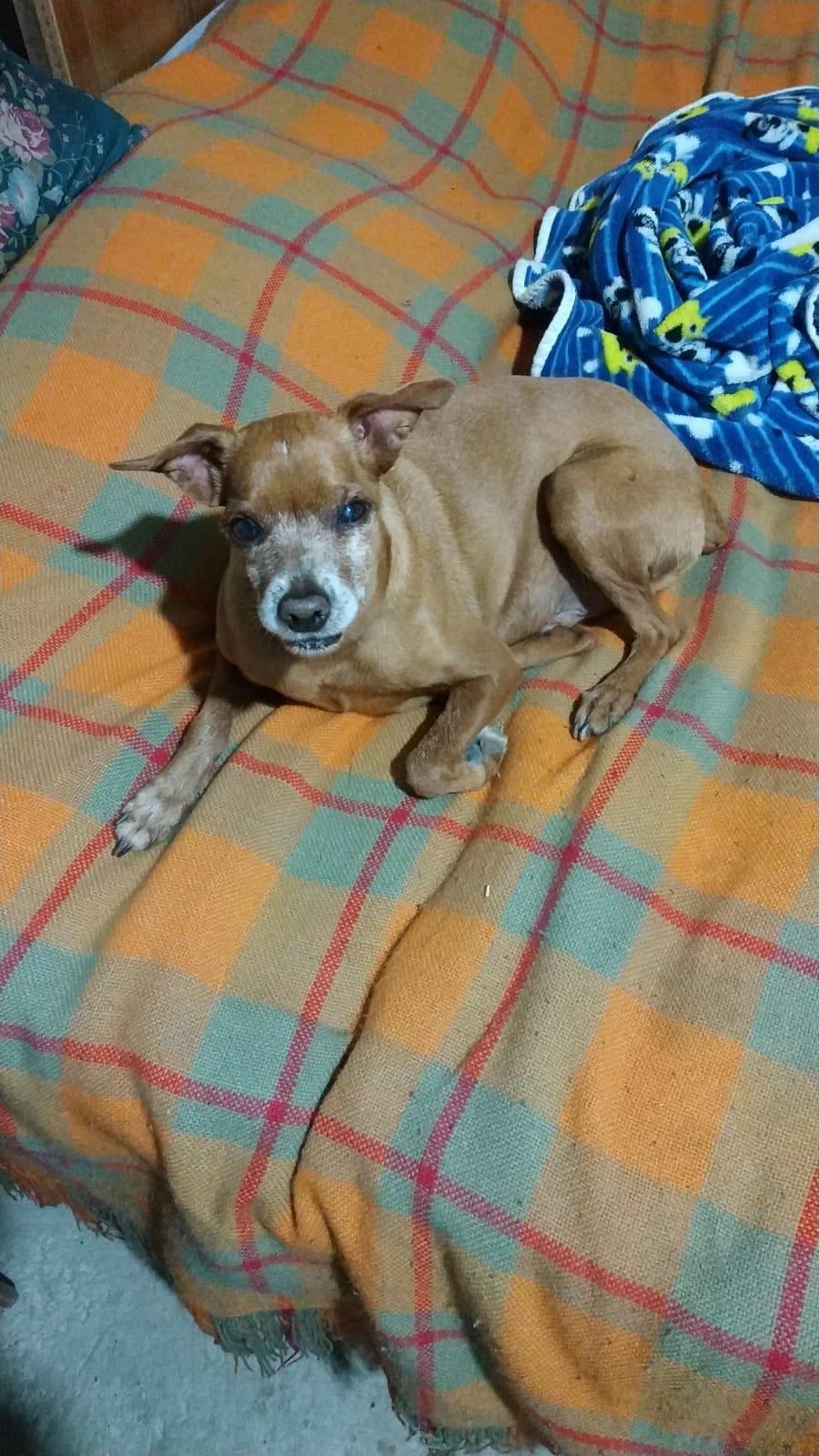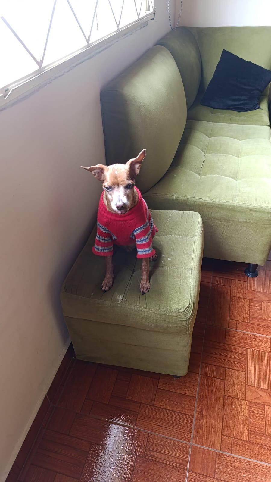 ✅ Es un perrito, macho, raza pincher miniatura, tiene canas alrededor de su trompita, tiene un tatuaje 18 en la oreja derecha por su castracion, tiene los pómulos metidos por una enfermedad que tiene y necesita su medicación diaria, tiene solo un colmillo y le sale de su boca y tiene 11 años, está esterilizado