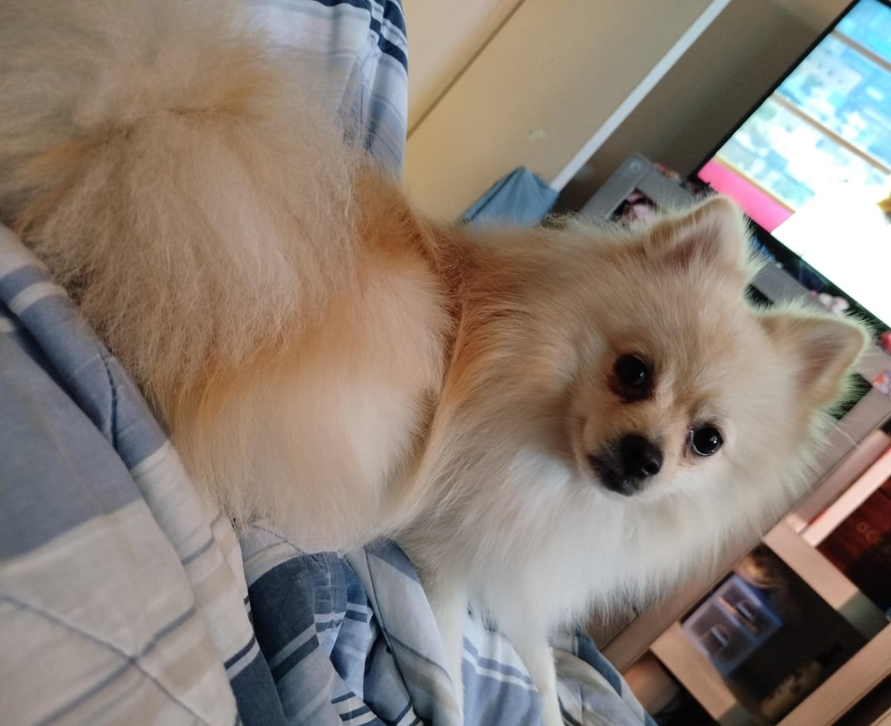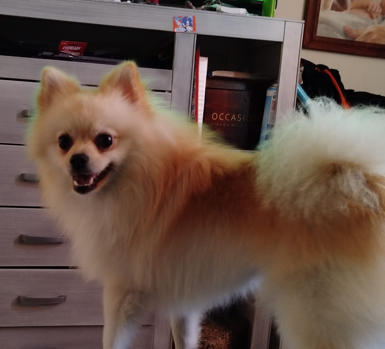 ✅ Es un perrito, macho, pomerania de pelo blanco con la espalda cobriza y colita blanca, tiene un colmillo chueco, tiene 1 año y 4 meses y esta esterilizado