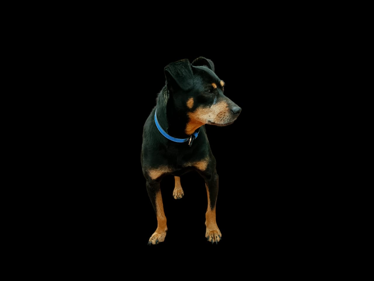 ✅ Es un perrito Pinscher adulto de patas largas color negro con café. Tiene 9 años de edad y está esterilizado
