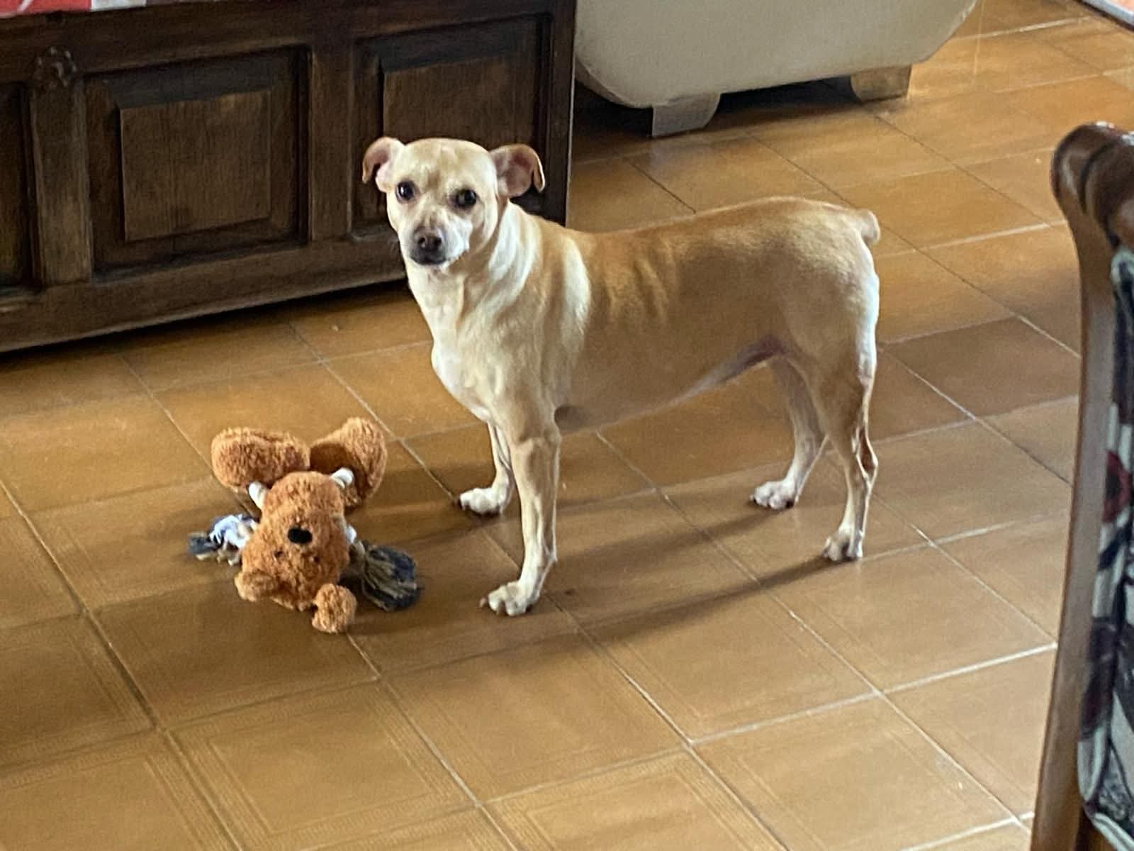 ✅ Es una perrita, hembra, es criollita, de tamaño mediana y color mono/rubio, tiene 7 años y está esterilizada.
