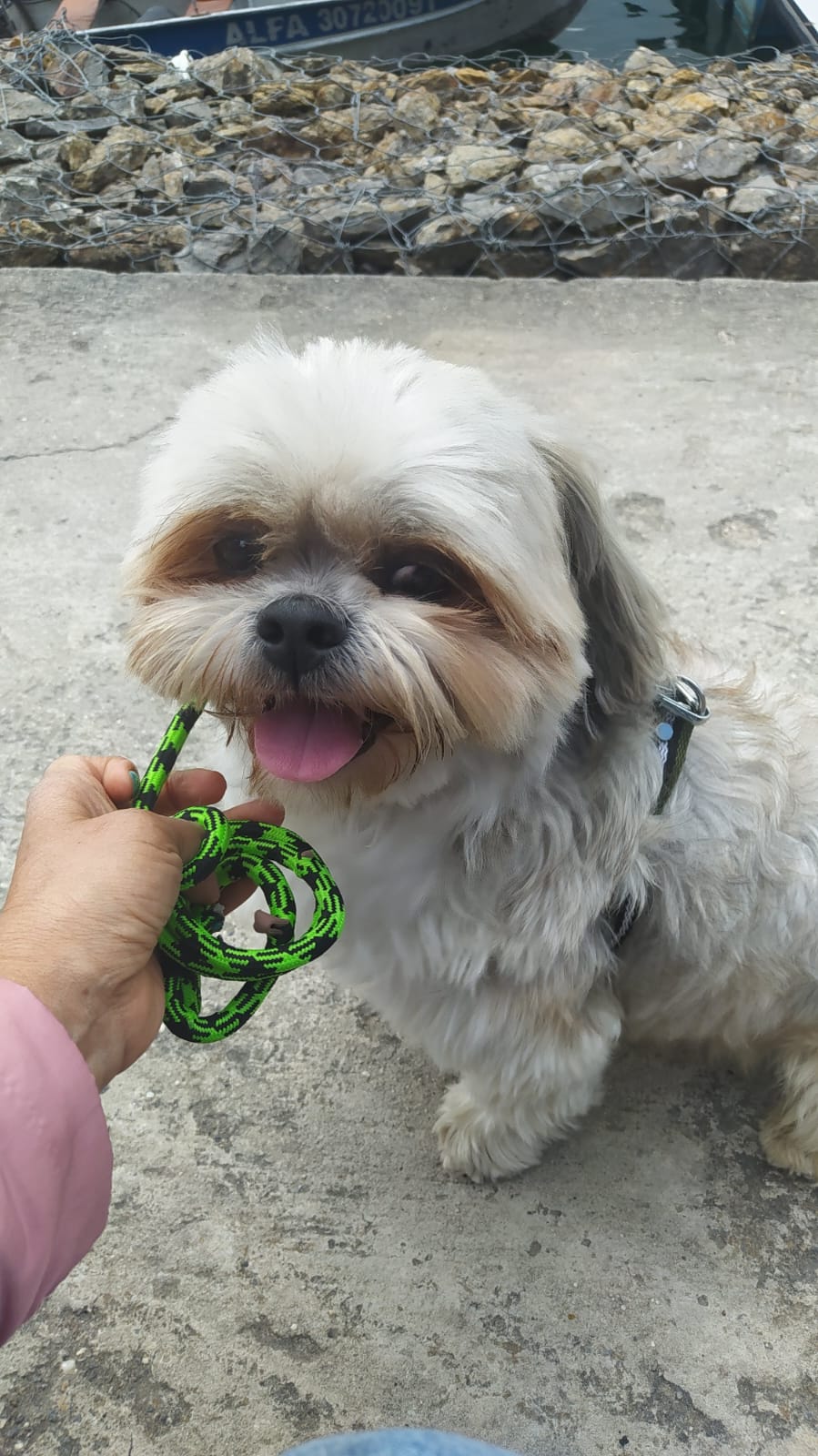 ✅ Es un perrito, macho, shih-tzu, es de tamaño mediano ,de color gris con amarillo, en el.momento tiene corte de pelo cabeza de león cuerpo cabello corto, 11 años de edad.