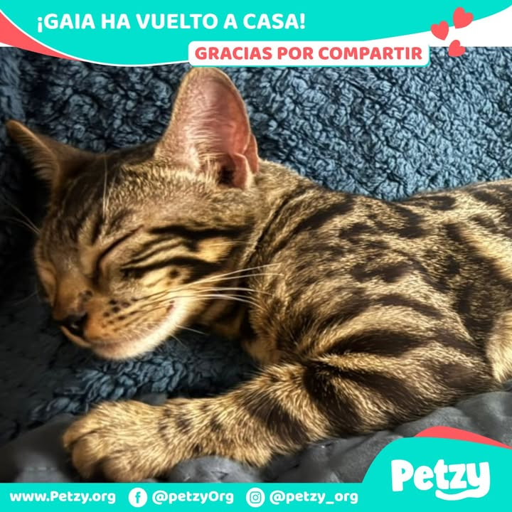 Les damos la feliz noticia de que Gaia 😺 ha sido encontrada y está de regreso con su familia 🥳 Después de 1 día de intensa búsqueda, Gaia ha vuelto a casa sana y salva. 😍 Queremos agradecer a toda la comunidad por su apoyo y difusión 🏡 en la búsqueda de Gaia. Gracias a su ayuda y solidaridad, esta historia tuvo un final feliz. 🌈💕