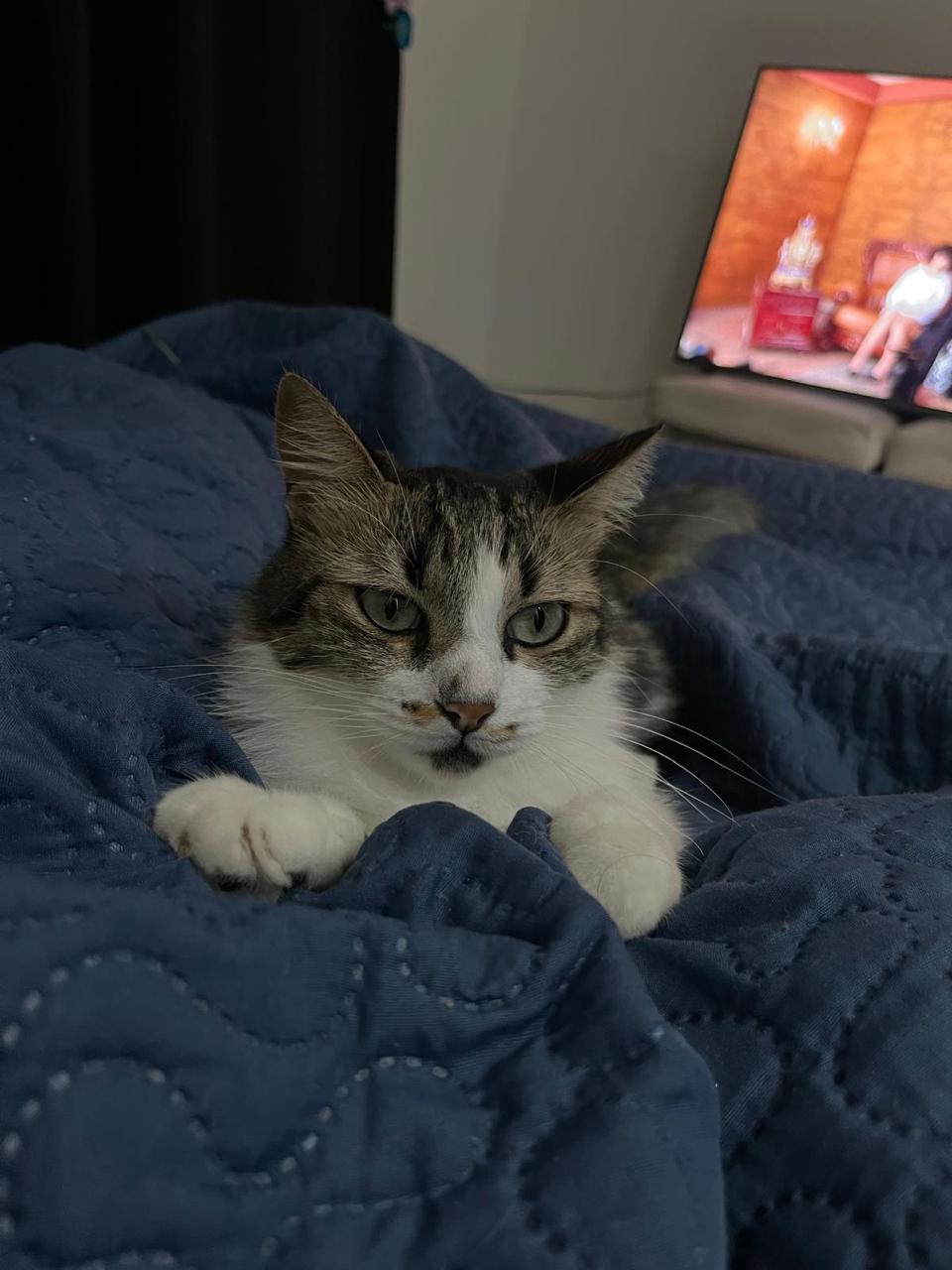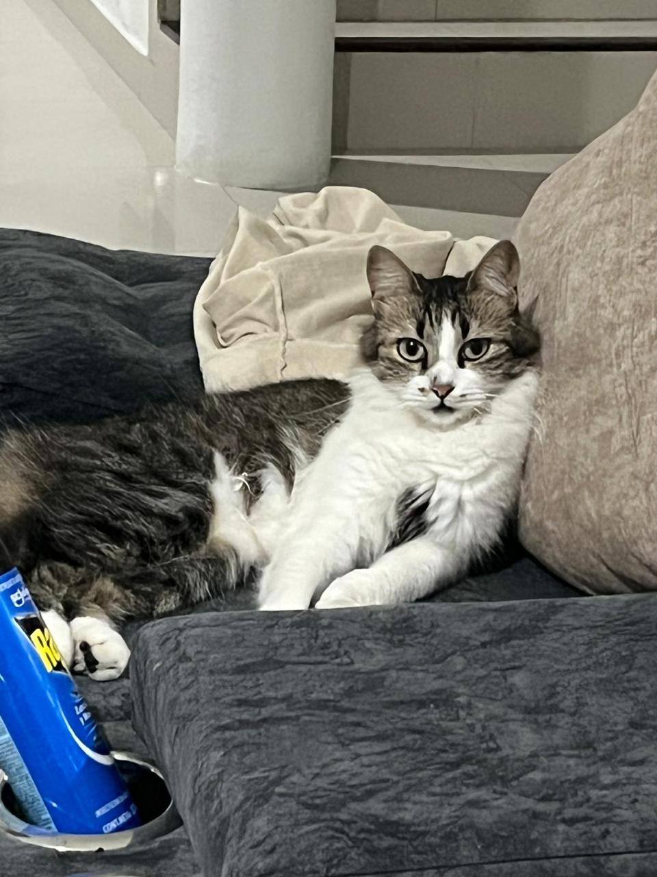✅ Es una gatica, es criollita, el pecho y las patitas son de color blanco y la cola es peludita. Tiene 3 años y está esterilizada.