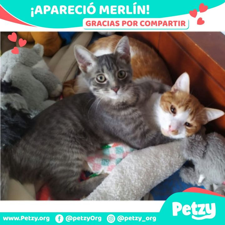 Merlín 🐱 ha regresado a casa con su querida familia 🥳 y queremos compartirles la gran alegría que viven ellos ❤️ y claro, cada uno de los que hemos estado al pendiente del regreso de Merlín 🐱 gracias por siempre compartir 💪🏽