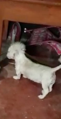 ✅ Es de color blanca, de tamaño pequeña, cola larga, pelo corto, estaba peluqueada así: cola con pelo más largo y compete, en su cuerpo pelo bajito.