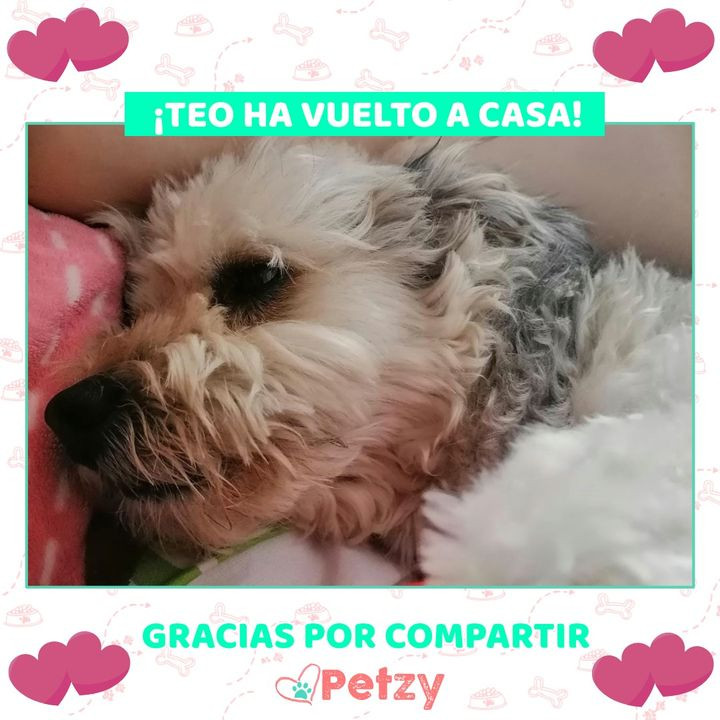 Mil y mil gracias por todo su apoyo, siempre animando a seguir buscándolo y hoy por fin esta nuestro toby en casa petzy gracias por hacer posible que esta felicidad llegara de nuevo a mi familia