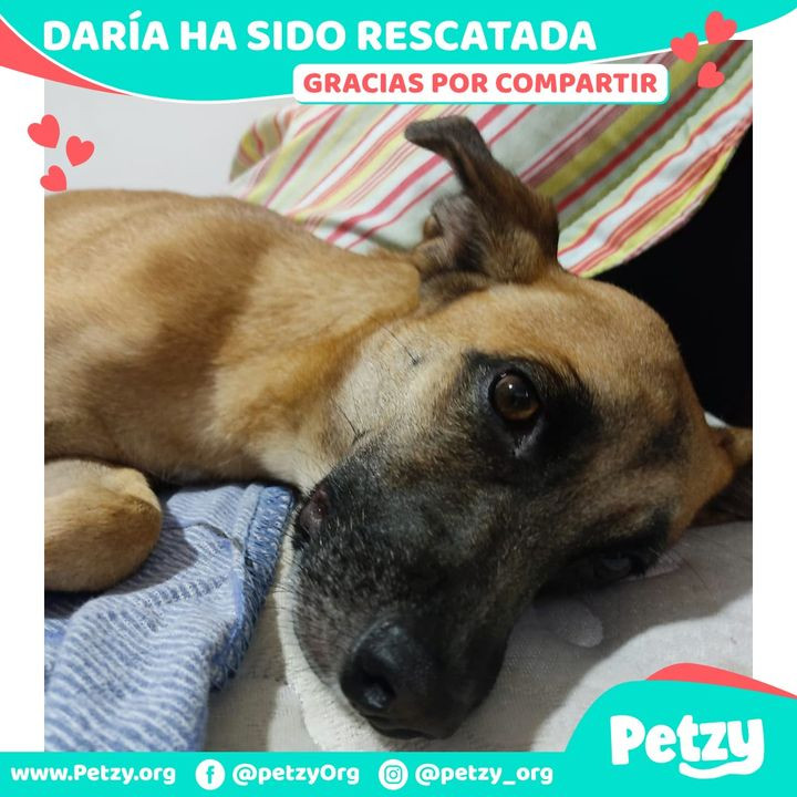 Daría 🐶 también ha sido rescatada 🥳 aunque tenía sus paticas ampolladas 🥺 de tanto caminar ya se encuentra en casa 🏡 y ha recibido el tratamiento necesario para su recuperación 🥰 después de haberse perdido 🙏🏼 mil gracias a quienes ayudaron en su búsqueda y localización