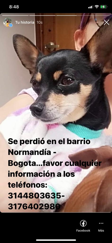 Si la ves, puedes darle hogar de paso 🏡 mientras su familia la recoge🙏 También puedes escribirnos 📩 al Messenger de Petzy, por DM o a nuestra línea ☎️ Whatsapp 313 349 7682.