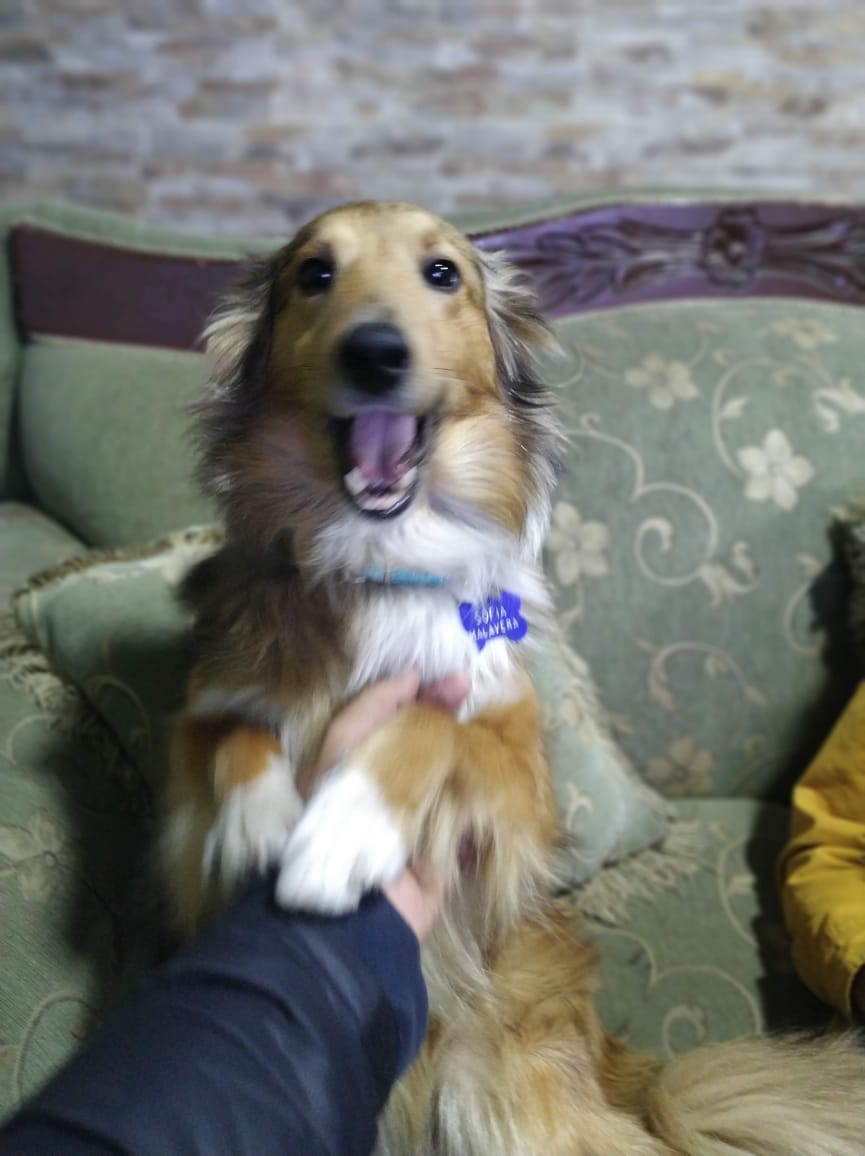 ✅ Es una perrita es de color Sable (Café) con manchas negras, el pecho es blanco, su cola es esponjada (tipo zorro) y su nariz es puntuda.