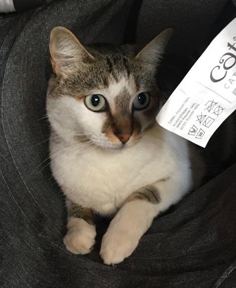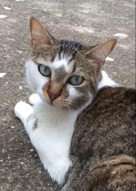 ✅ Gata de pecho blanco y esponjoso, lomo gris con rayas negras y mancha gris en el rostro. Tiene rapado el lomo cerca a la cola por una curación que se le hizo recientemente de un mordisco de otro Gato. Colores combinados de gris con blanco, ojos verdes, nariz naranja claro.