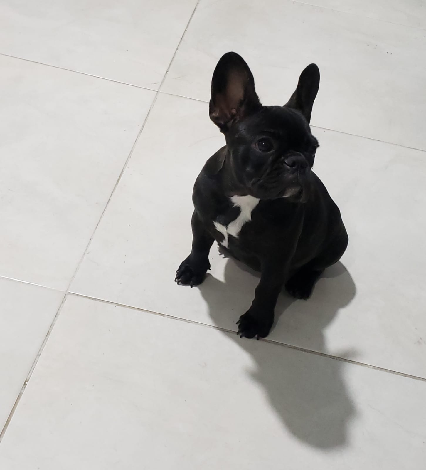 ✅ Raza: Bulldog Frances Blinder negra con barcino.