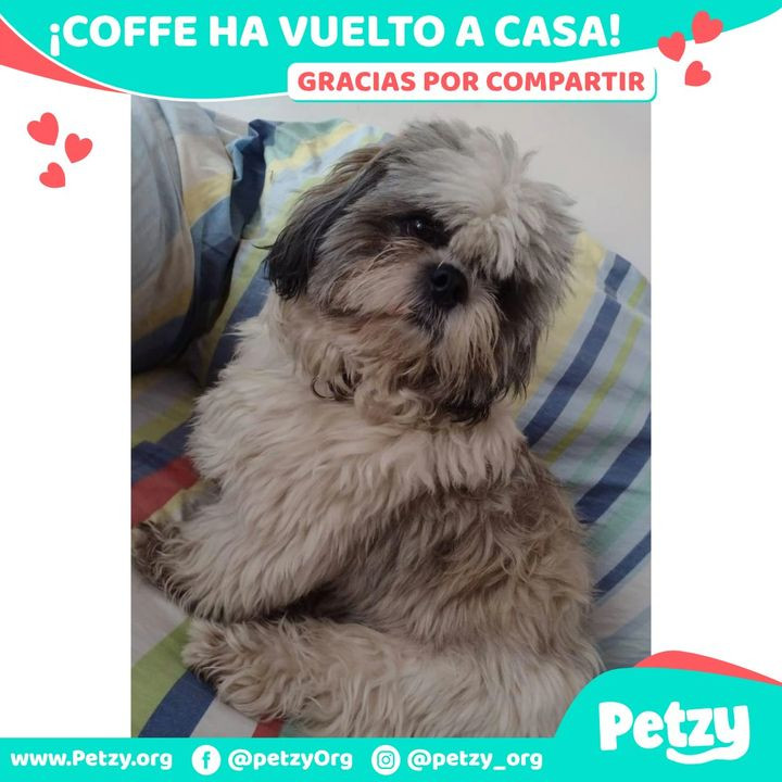 Coffe 🐶 esta de vuelta 🎉 ya ha regresado a casa con su familia ❤️ Muchas gracias a todos los que se han tomado el tiempo de poner su granito de arena en la búsqueda de Mike🐶 🥳